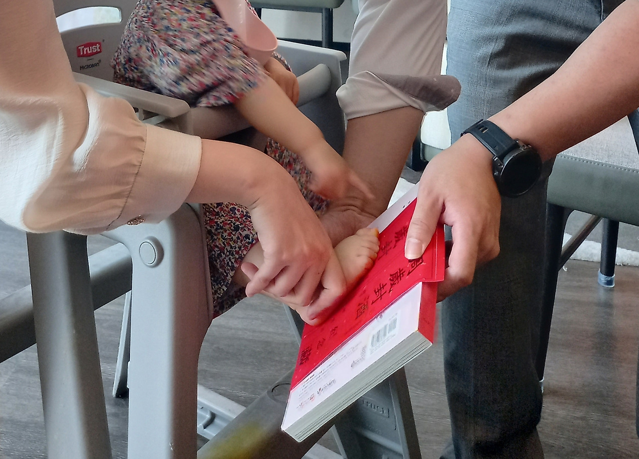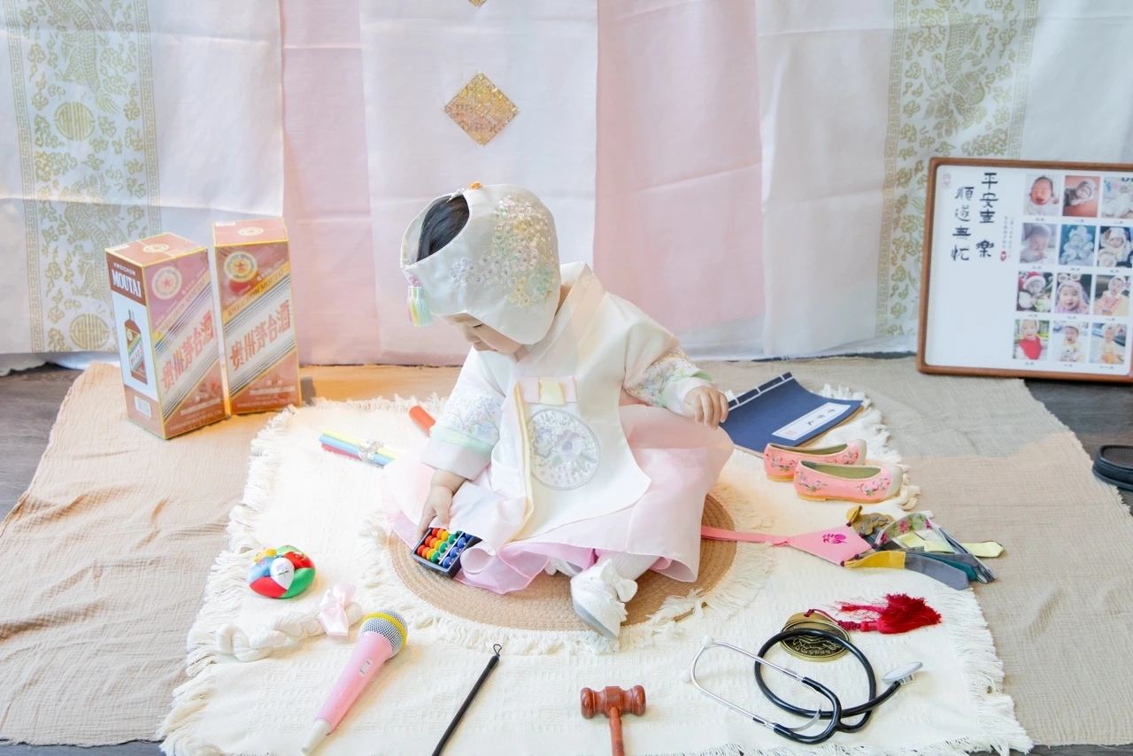출생부터 지금까지 매 개월마다 찍은 사진에다 돌사진을 추가해서 인주로 발도장 손도장 찍고, 양쪽 엄지 지장도 찍는다. 고급술 두 병에 노란 인주로 발도장 찍어서 봉인한다. 고이 보관했다가 시집갈 때 줄 거란다.