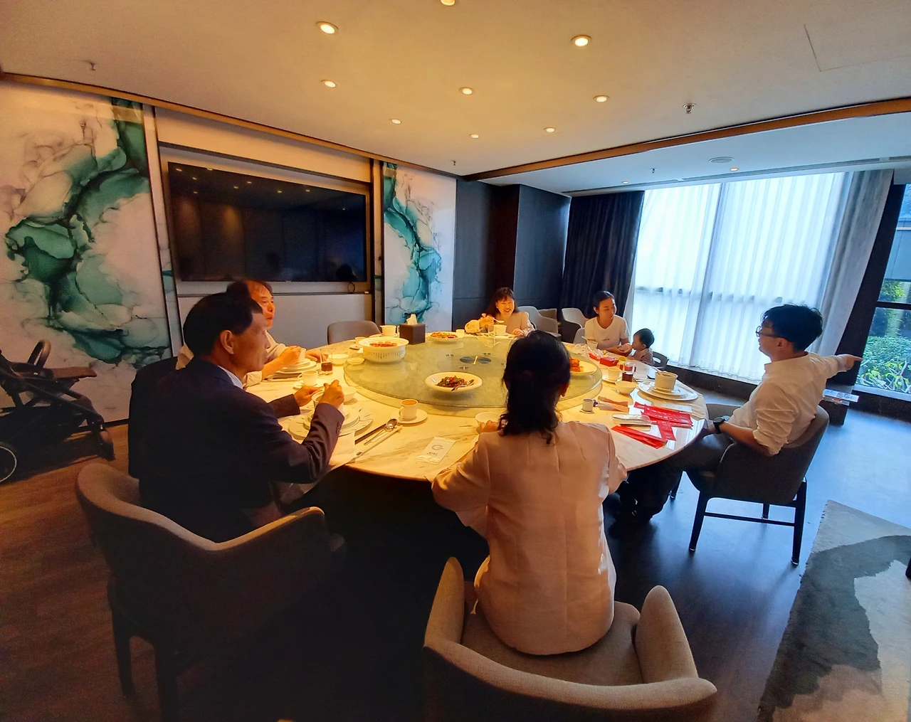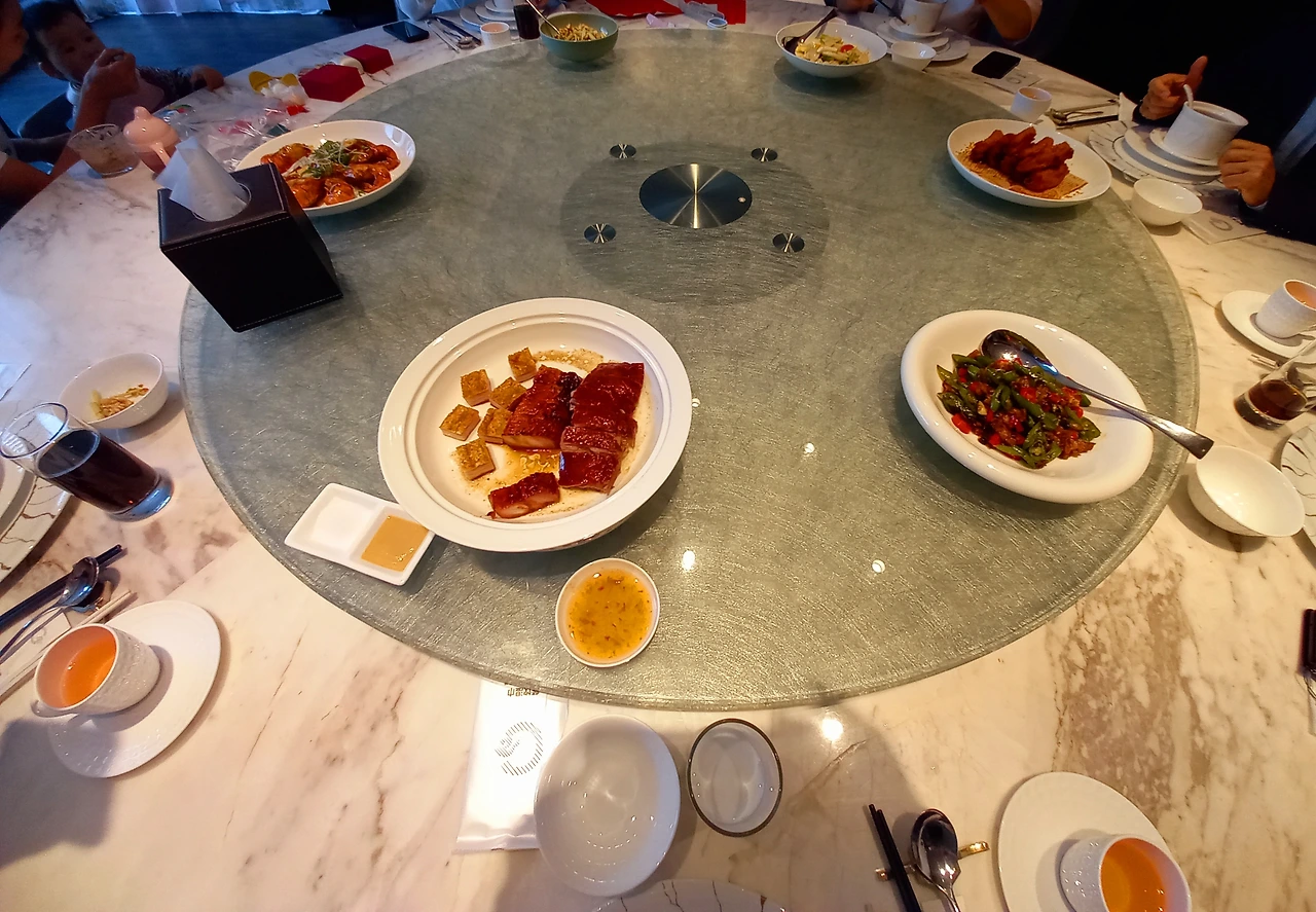 여섯 명이 앉은 원탁 테이블에 주문한 음식이 하나씩 나온다. 울 외손녀는 어린이 의자에 앉고 시터가 이유식을 먹인다. 시터는 우리 식사를 돕기 위해 나가서 미리 점심을 먹고 왔다. 원탁 데이블이 돌며 생전 처음 보는 음식들이 차려질 때마다 천천히 손이 간다. 충분히 많이 먹었는 데도 음식이 남는다. 중국은 먹고 남은 음식을 싸가는 풍습이 있어서 좋다. 다소 음식을 많이 주문해도 버리는 것 없이 포장해 가서 다 잘 먹을 수 있으니 말이다.