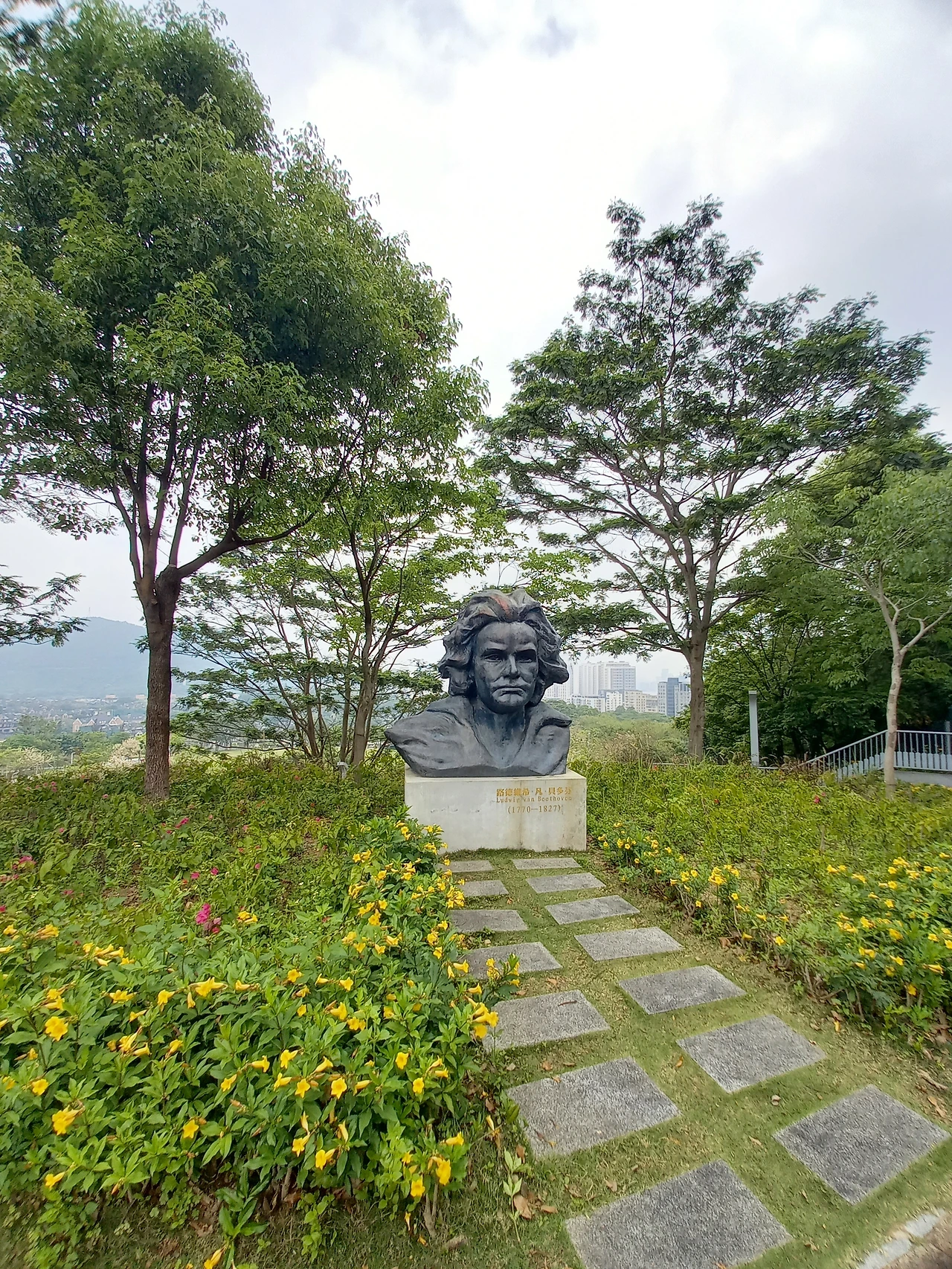 베토벤 흉상은 높은 전망대 위에 올라가서 보니 더욱 멋지다. 노랑꽃과 어우러지는 모습에서 음악이 흐른다. 전원, 운명, 합창 등 베토벤 교향곡들을 떠올려본다.