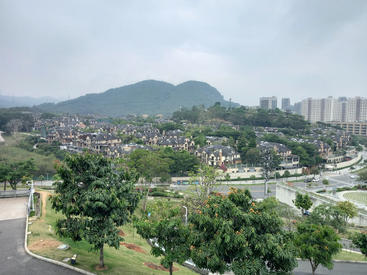 전망대가 있고, 큰 전망대가 있다. 작은 전망대 먼저 올라가서 두루 조망해 본다. 왼쪽 편에 고급 주택들이 한데 몰려있는 곳이 보인다.