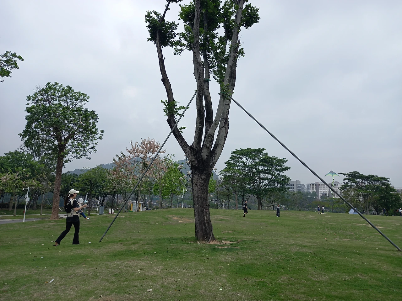 울 딸은 외손녀를 어깨띠에 매서 안고 같이 걸었다. 애가 밖에 나오는 게 얼마나 좋은지 어깨띠 밖으로 나온 발을 동동거리고 얼굴에 미소가 가득하다. 두 사람이 악기를 켜고 노래하는 곳에서는 또 덩실덩실 춤을 춘다. 연날리기하는 사람의 연을 따라 쫓아가 보기도 한다. 둘이서 신이 났다.
