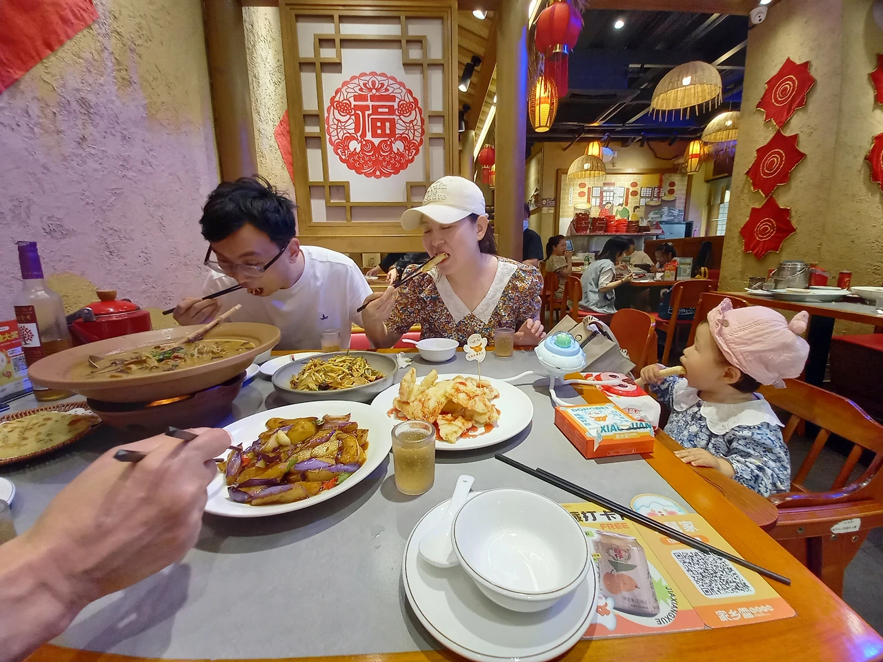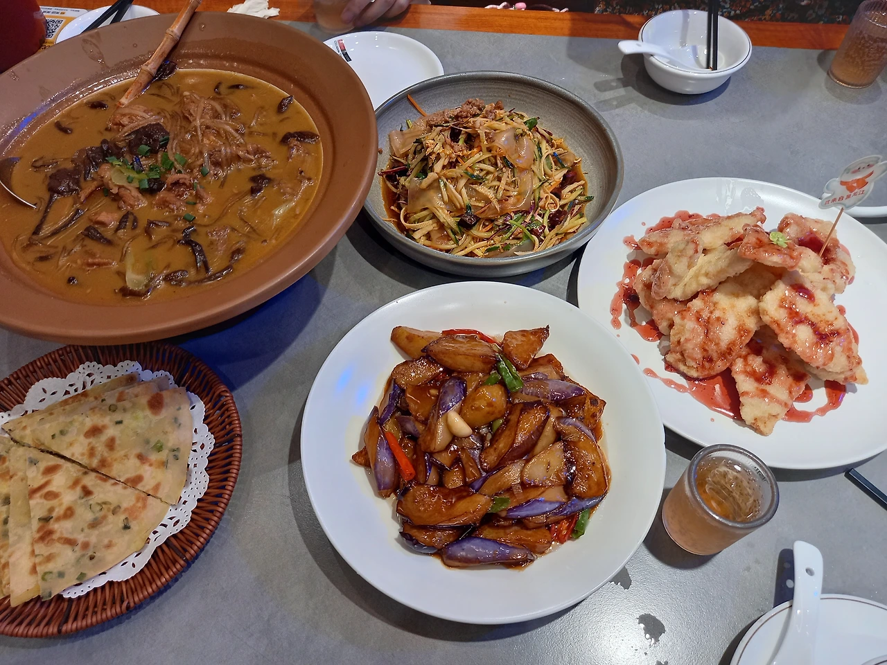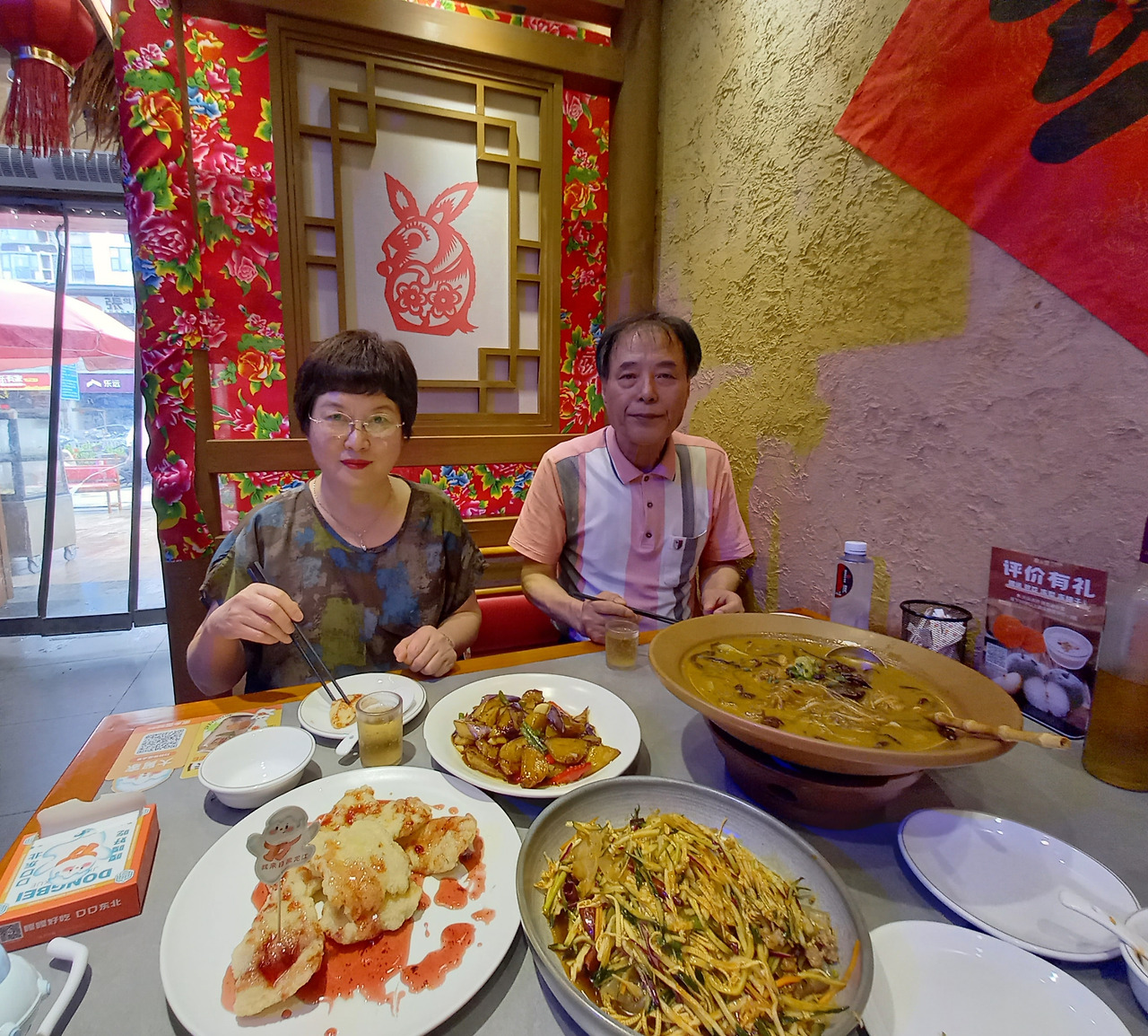 울 딸과 외손녀가 준비를 마쳐서 함께 밖으로 나온다. 꿔바로우 집은 그리 멀지 않다. 울 사위가 먼저 가서 식사를 다 주문해 놓아서 식탁에 차려져 있다. 꿔바로우, 닭고기탕, 가지, 전, 야채 등이다. 특이한 것은 식초물을 주스처럼 마신다. 작은 컵에 따라서 마시면서 음식을 먹으니 느끼하지 않고 좋다.