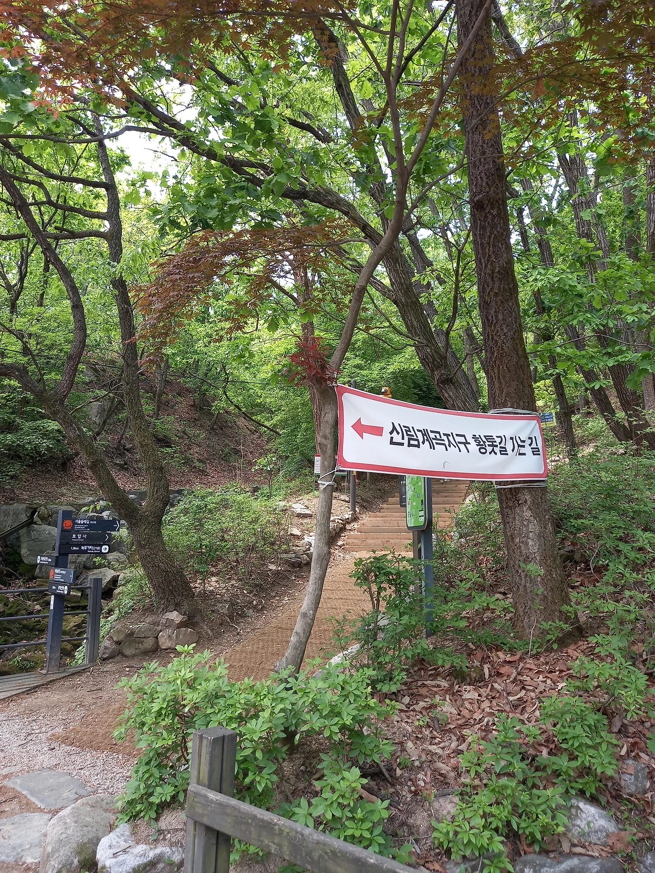 하산길 끝부분은 돌 계단, 통나무 계단이 많은데 아주 가파르다. 한 발 한 발 걷는데, 오른쪽 발목이 살짝 아프면서 불편하다. 다친 것도 아닌데 돌길에서는 발목도 무릎도 무리가 간다. 내가 암릉과 돌길을 별로 안 좋아하는 이유이기도 하다. 집에 가서 씻고는 맨소래담을 바르고 자야 할 것 같다.