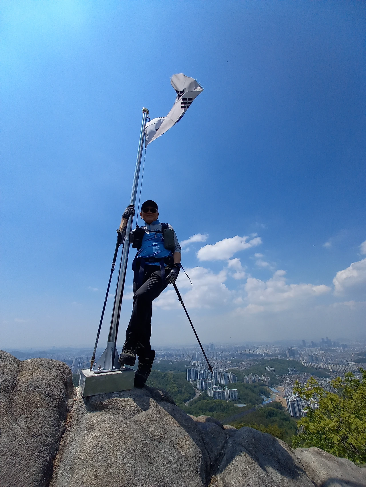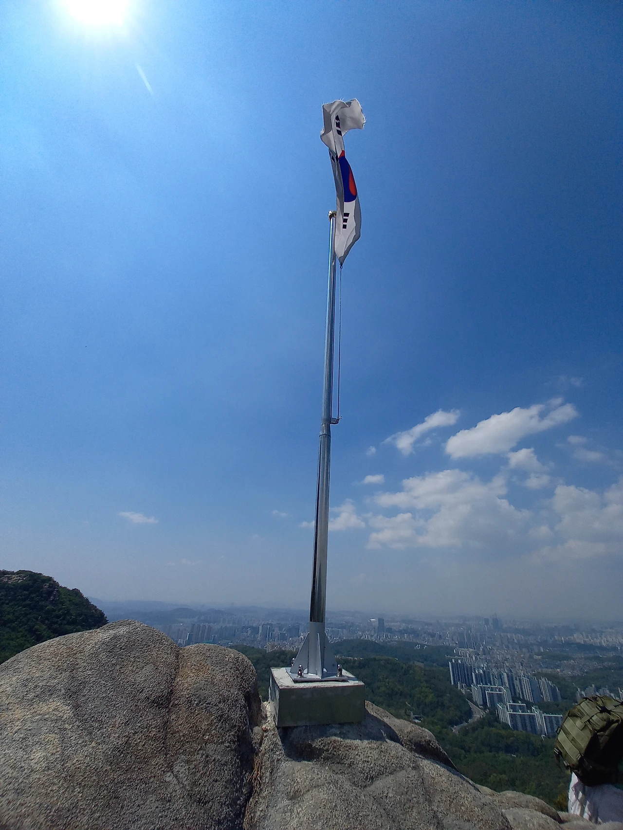 그런데 국기봉에서 찍은 내 사진에는 국기가 다 잘렸다. 나는 다른 사람 사진 찍을 때 국기 나오게 찍느라고 애를 썼는데 말이다. 다른 사람도 안 나오게 찍으려고 기다렸다 찍었는데 내 사진에는 여러 사람이 나온다. 많이 아쉽다. 이래서 또 다음에 이곳을 또 올라야 할 것이다.