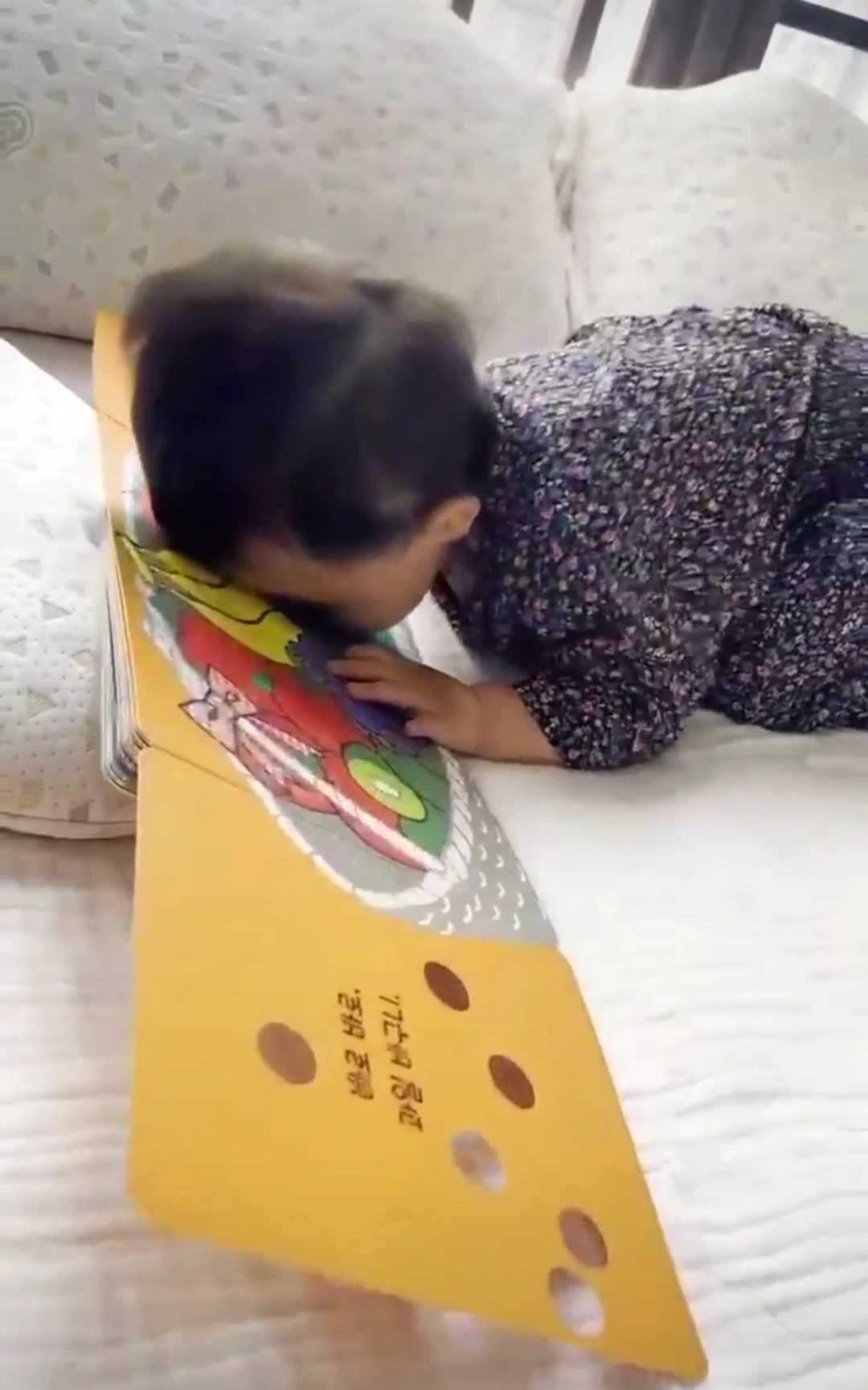 집안에서는 장난감이나 책을 가지고 잘 논다. 손가락으로 그림을 가리키거나 한 장 한 장 책장을 넘기는 모습도 예쁘다.