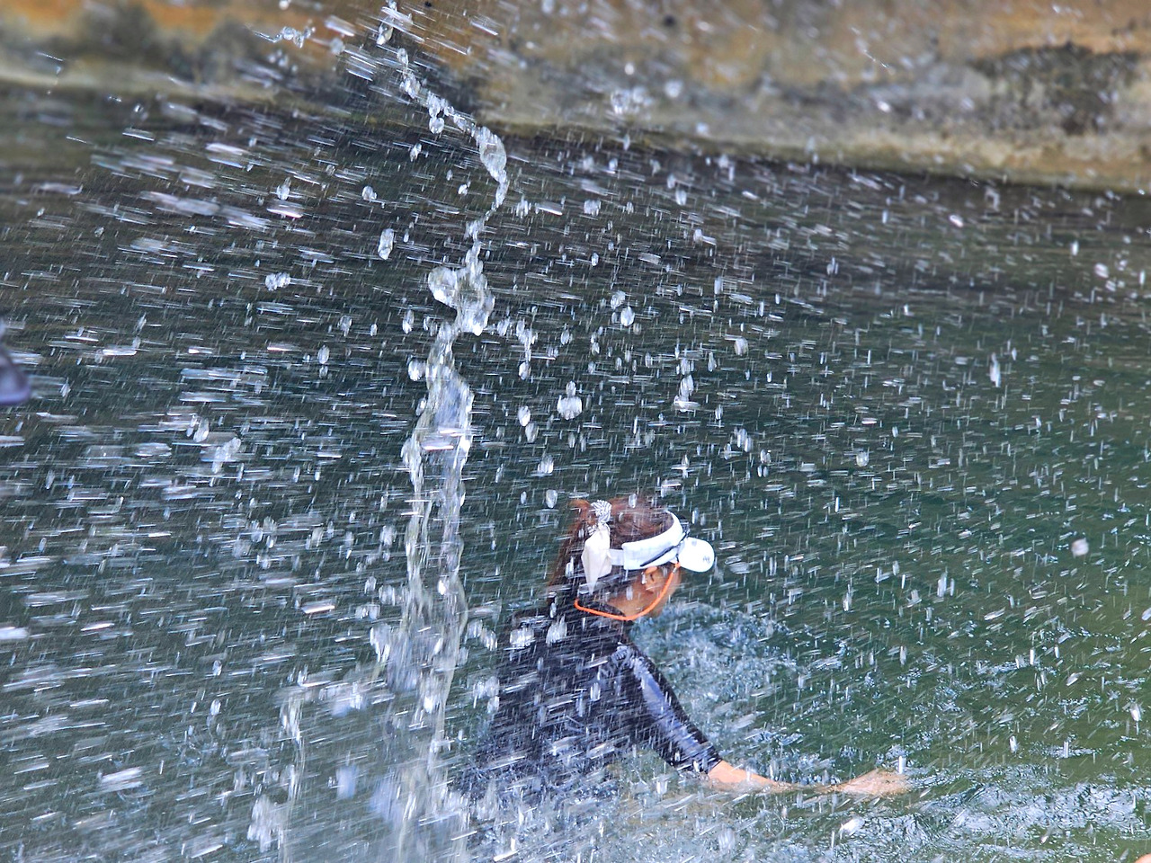 그래서 우리를 태우고 덕산 1교로 갈 수 없다는 얘기이다. 할 수 없이 배낭을 짊어지고 덕산 1교로 다시 걸어 내려온다. 다리 아래에 취적봉을 오르지 않은 해늘님들이 기다리고 있다. 취적봉 오른 이들 중에도 벌써 옷을 입은 채 물속에 들어간 이들도 있다.