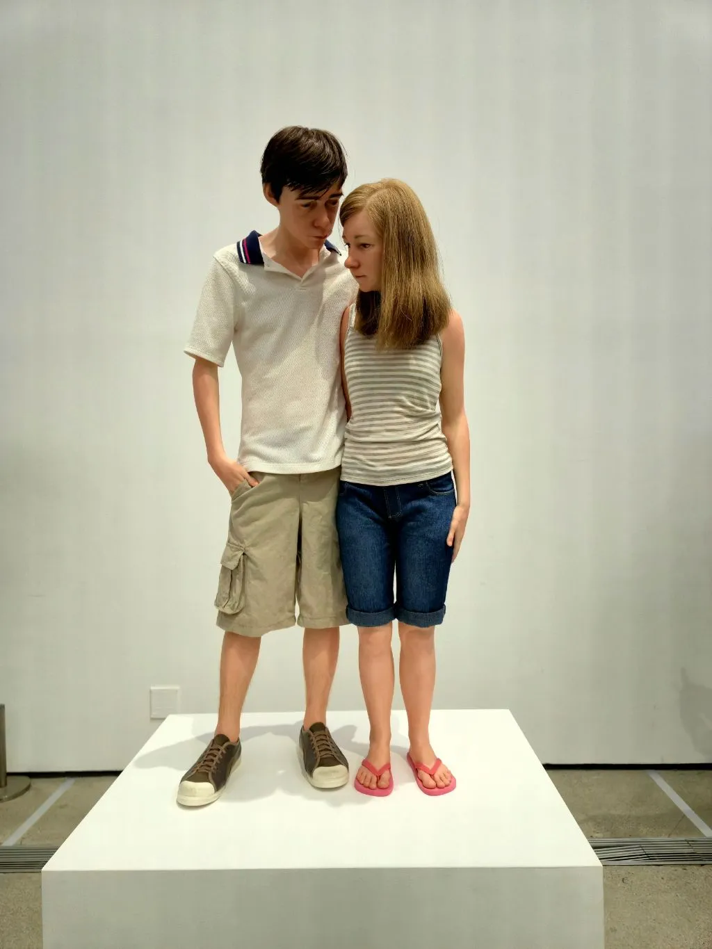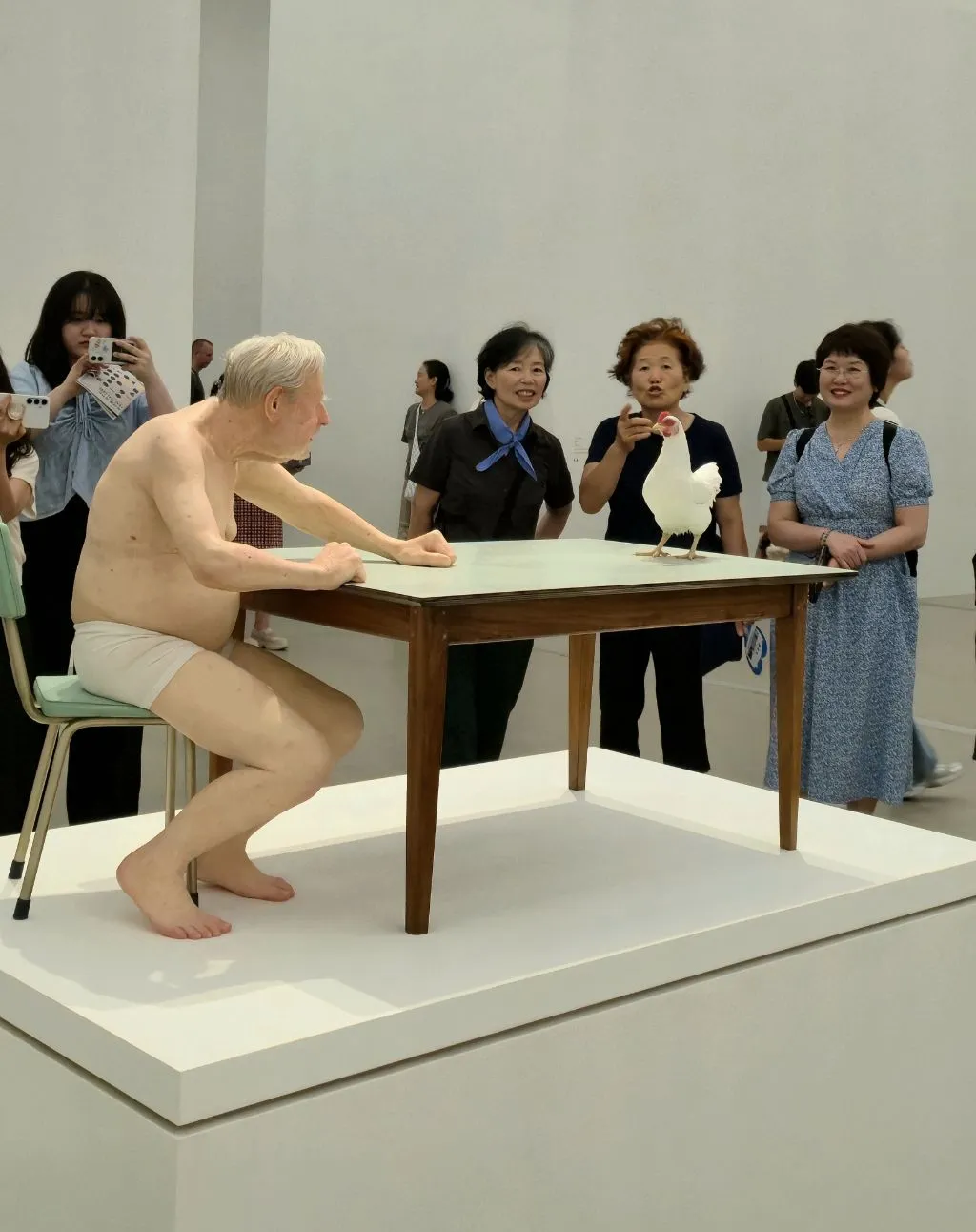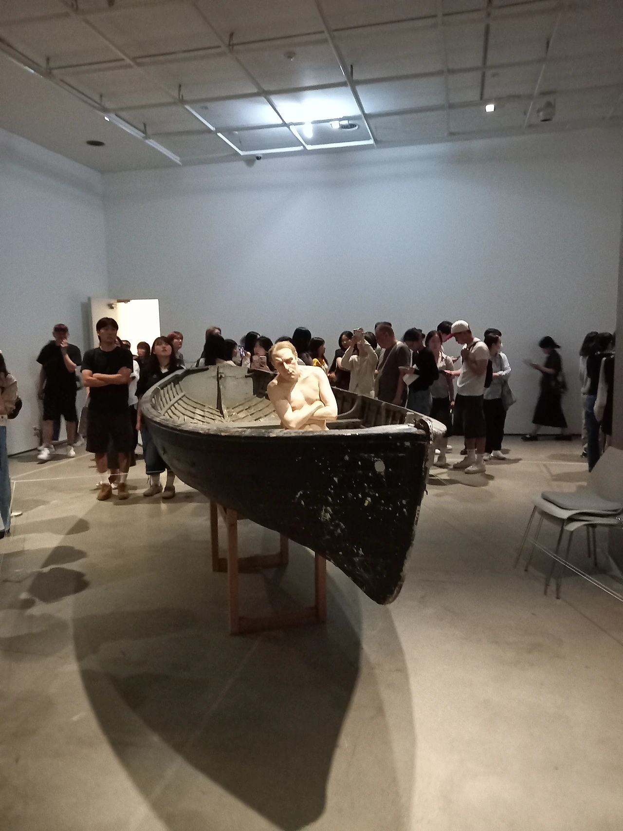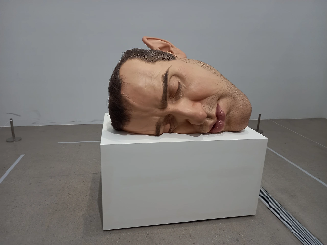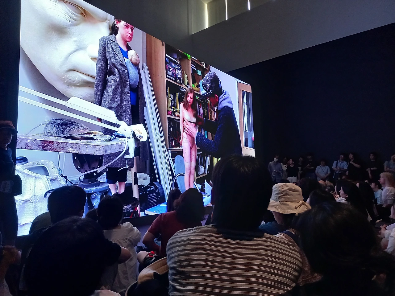 론 뮤익 조각가가 작업하는 영상도 보았는데, 정말이지 심혈을 기울여서 작품을 만들고 있다. 작품 눈동자의 실핏줄도 그려 넣고 눈에 액체도 떨어뜨려 넣는다. 머리카락도 다리의 털도 모두 심어서 잘라낸다. 팔다리도 따로 작업해서 붙인다. 하나의 작품을 만드는데 몇 달에서 6~7년씩 걸리기도 한단다. 작품이 어찌나 정교한지 조각품이 아니라 진짜 사람 같다. 그래서 이토록 많은 사람들이 보러 오는 것이리라.