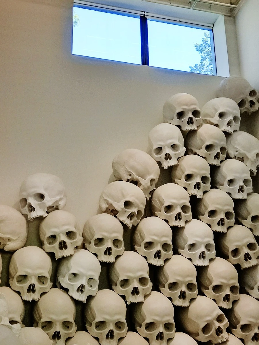 작품은 총 10개이다. 마스크 2, 나무를 든 여인, 침대에서, 젊은 연인, 치킨/맨, 유령, 쇼핑하는 여자, 메스, 배 위의 남자, 어둠 등이다. 마지막 작품은 해골 100개가 전시되어 있는 <매스(mass)>이다. 녹록지 않은 삶의 결과가 죽음이라는 것인가? 많은 문학작품도 예술작품도 허무 아니면 소망을 노래한다. 나는 기독교인이기에 허무가 아니라 소망 쪽이다.