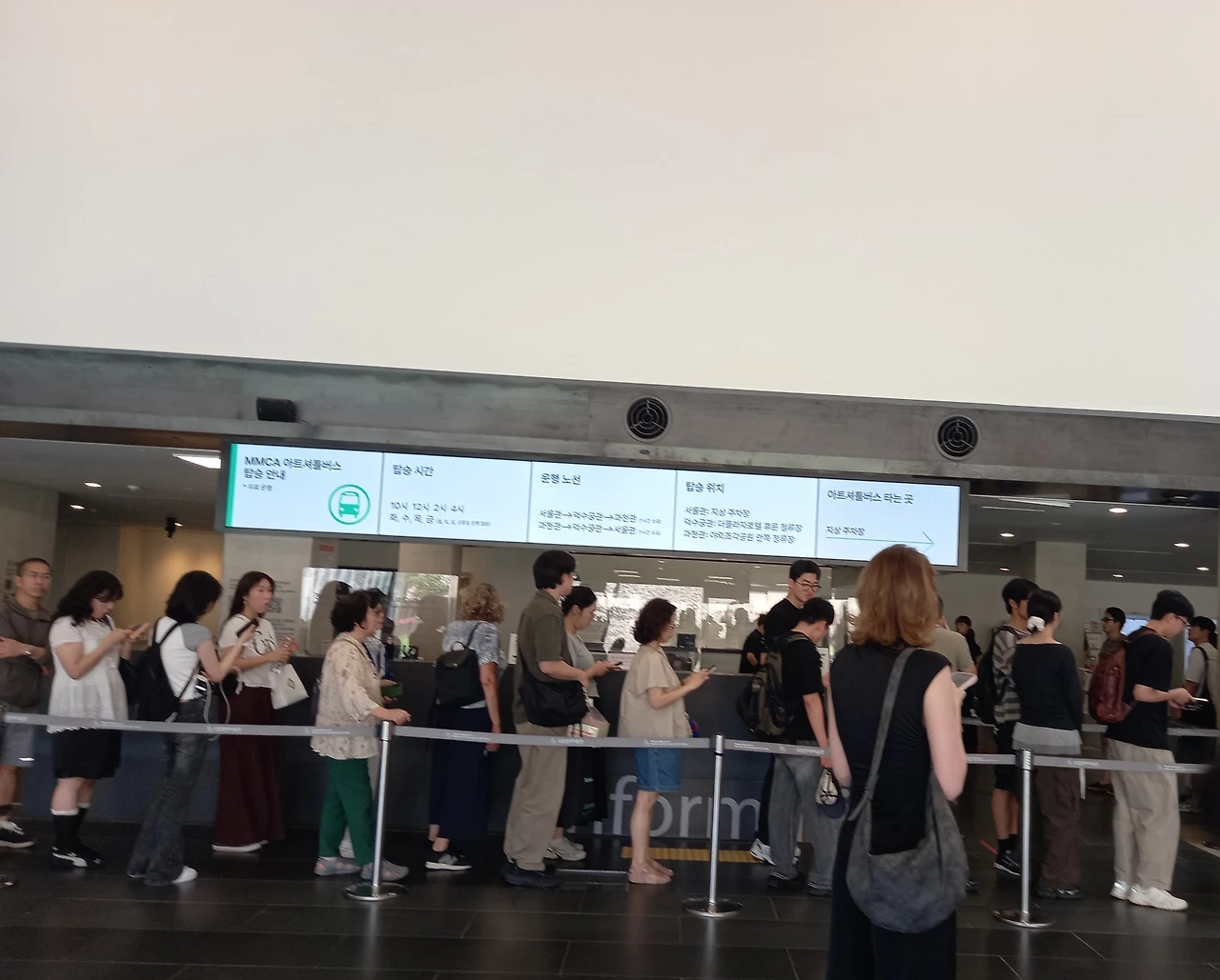 양산을 펴서 쓰고 걷지만 덥다. 바닥의 시멘트 벽돌과 건물 벽에 빛이 반사되어 꽂히는 여름 불볕더위이다. 햇빛을 피해 골목길 안으로 들어가서 걷는다. 한 10여 분 걸었을까? 곧 국립현대미술관 이름표와 건물이 보인다. 안으로 들어가니 표 끊는데 줄이 제법 길다.