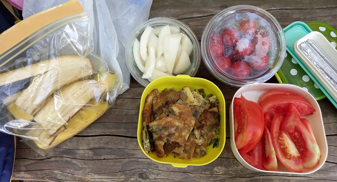 집결 시간은 오후 1시 30분, 나는 낮 12시 30분에 집을 나선다. 간식은 토마토와 에너지바 6개, 부침개와 게토레이 얼린 거, 얼음물 등을 싸 간다. 물론 더 간단하게 싸 가도 되지만 혹시 더워서 지치면 먹을 것이 좀 있고 물도 넉넉해야 좋기 때문이다.