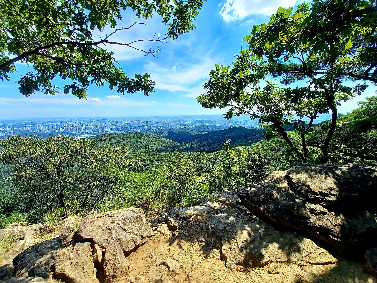 중간에 암릉 조망터가 나오는데, 수원 쪽도 시원하게 보인다. 창룡문 열기구가 동그랗게 떠있는 걸 보니 위치를 대충 가늠해 볼 수 있겠다.