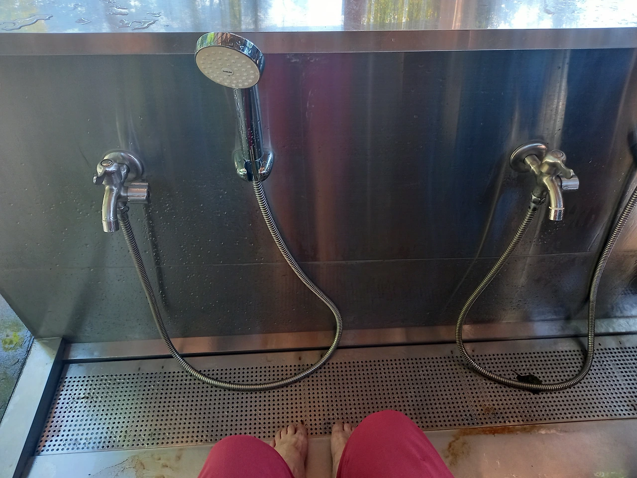 셋이서 발 닦는 수돗가에서 시원하게 씻고 있는데, 여산우님들과 마중 간 남산우님이 오신다. 이산가족 상봉같이 반갑게 인사하고 나는 옷을 갈아입으러 다슬기화장실로 간다.