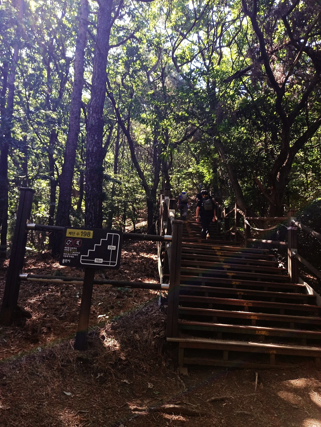 대장님과 다른 한 분 남산우님은 오래된 베스인이란다. 대장님과 두 번째 오신 남산우님은 가파른 데크길로, 다른 남산우님과 나는 좀 더 쉬운 그늘길로 오른다. 이분도 길을 잘 알아서 가파른 데크길이 아닌 그늘길 완만한 길로 형제봉 안내를 해주신다.