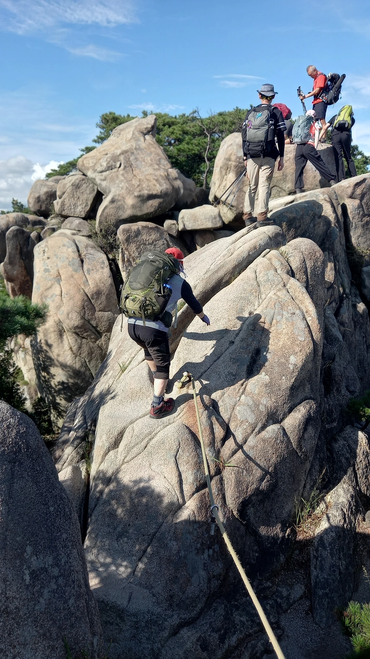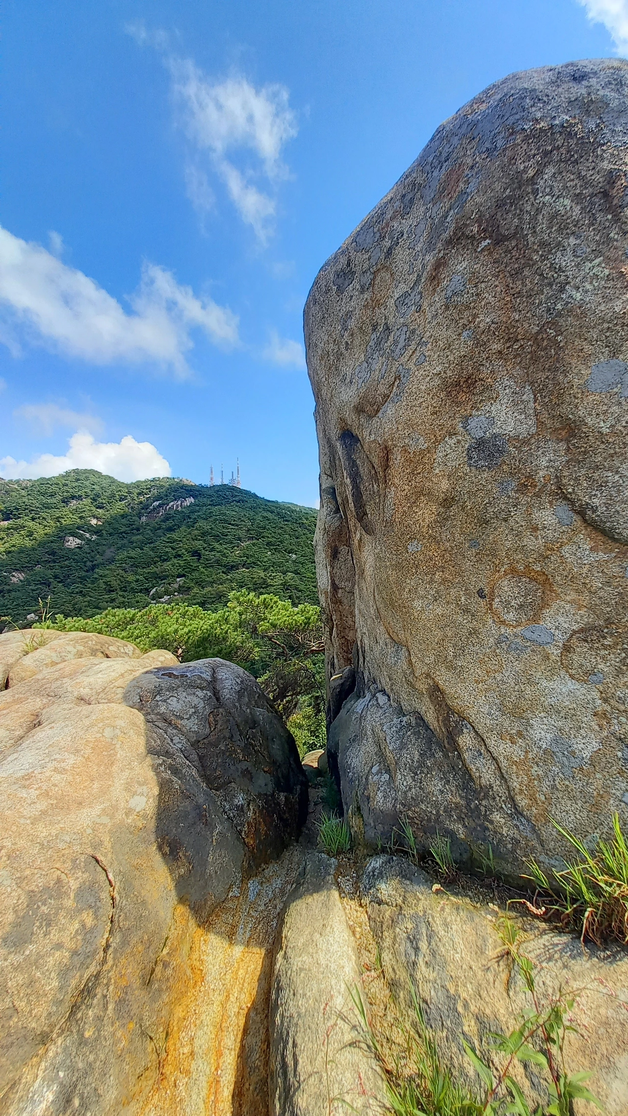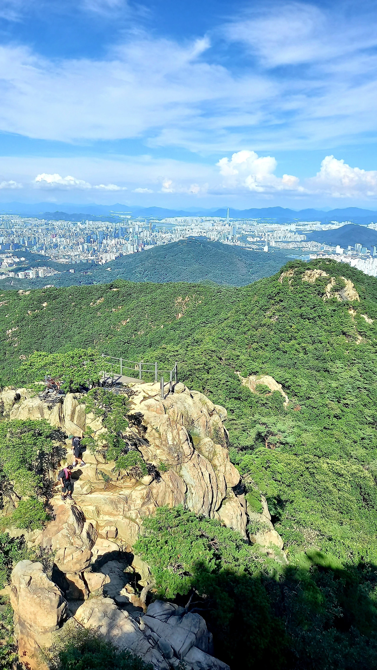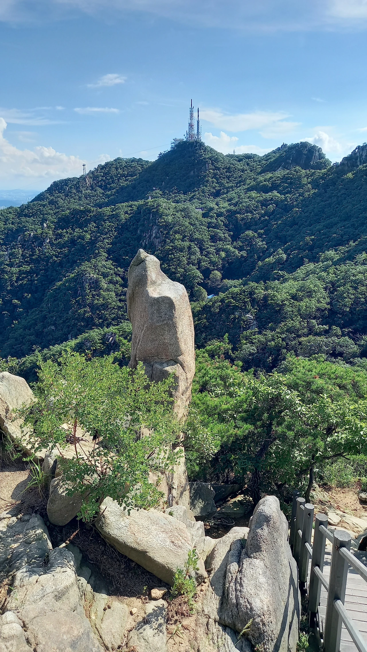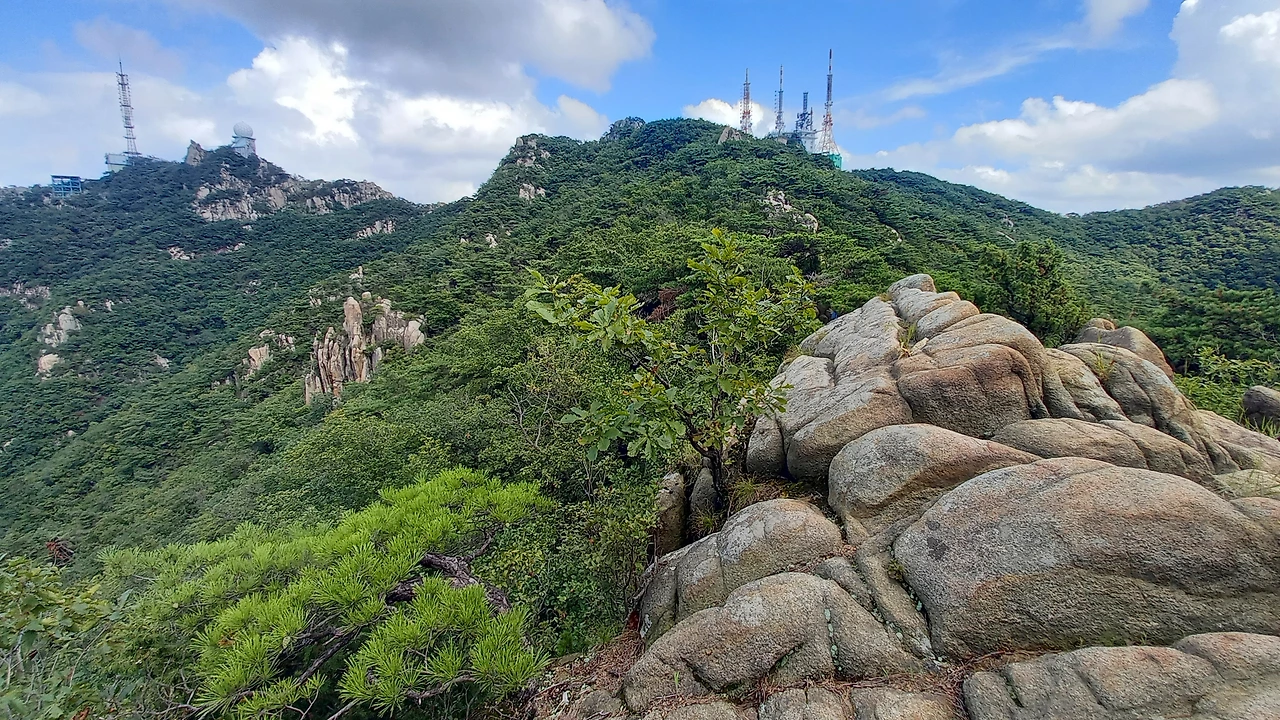 하산길은 가파른 데크길이 이어지는데 풍광이 아주 좋다. 그 어디를 돌아보아도 멋스럽다. 데크길 끝나니 역시나 웅장한 암릉길이다. 내리락 오르락 한참 간다. 온몸에 땀이 촉촉하다. 사당역 가는 길 길다. 돌문바위, 마당바위 지나서 시간을 보니 오후 5시가 넘었다. 데크 쉼터에서 쉬어가니 숲에서 천연 바람이 불어온다.