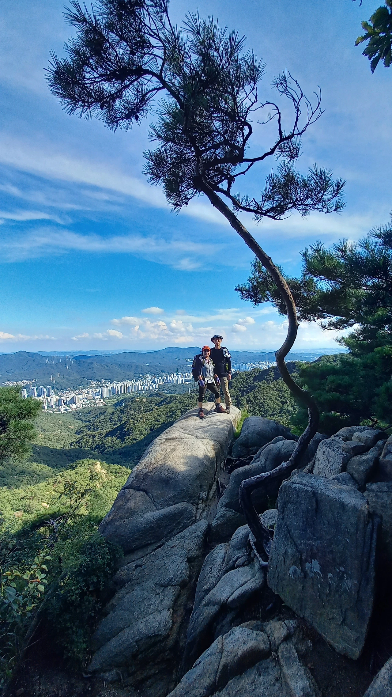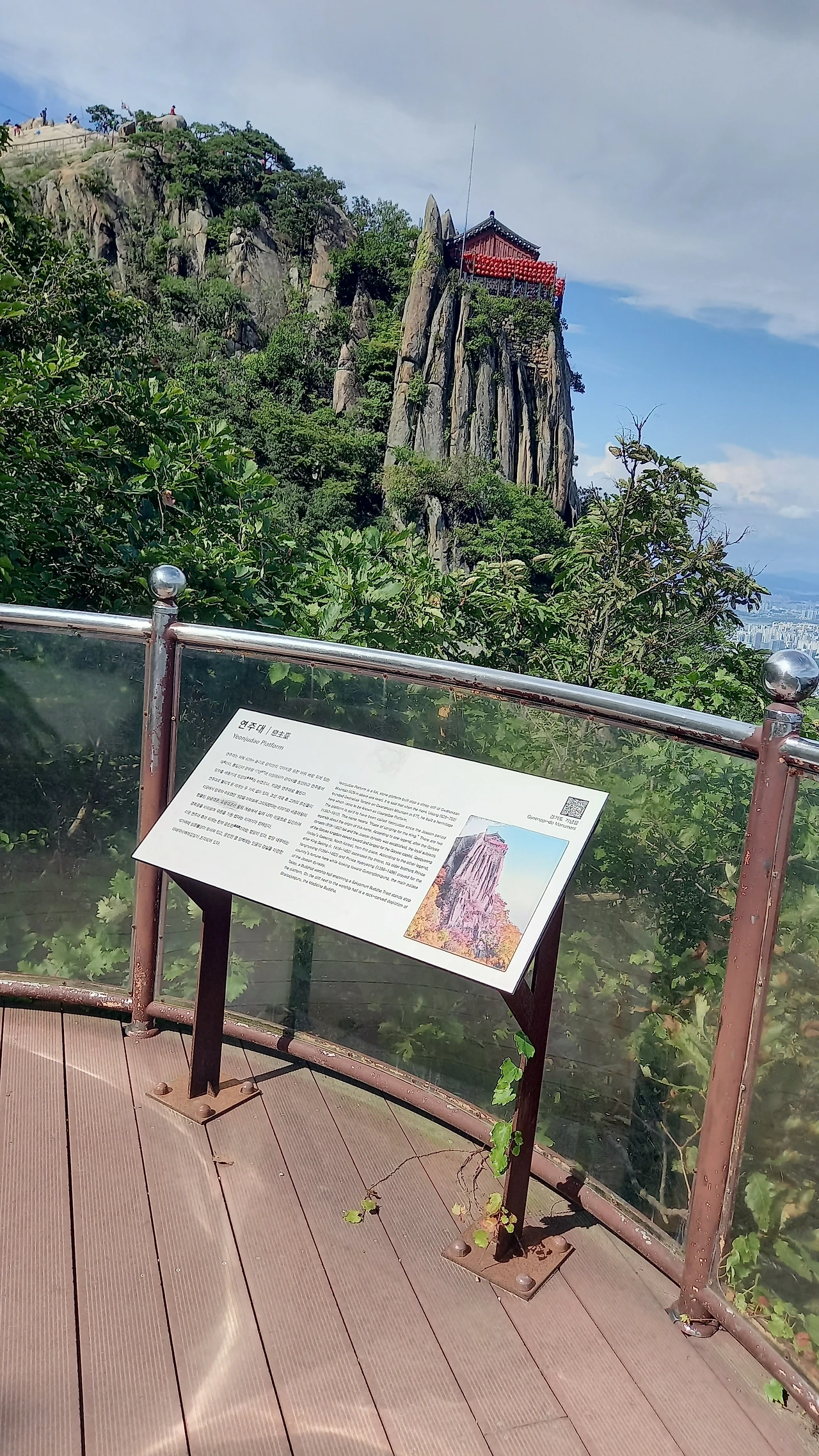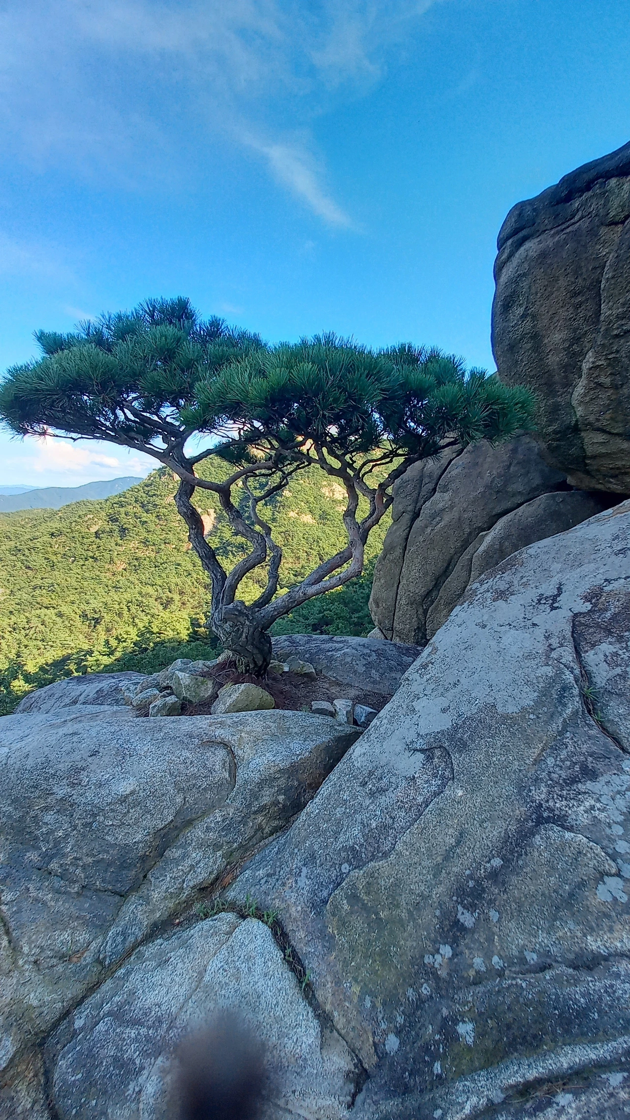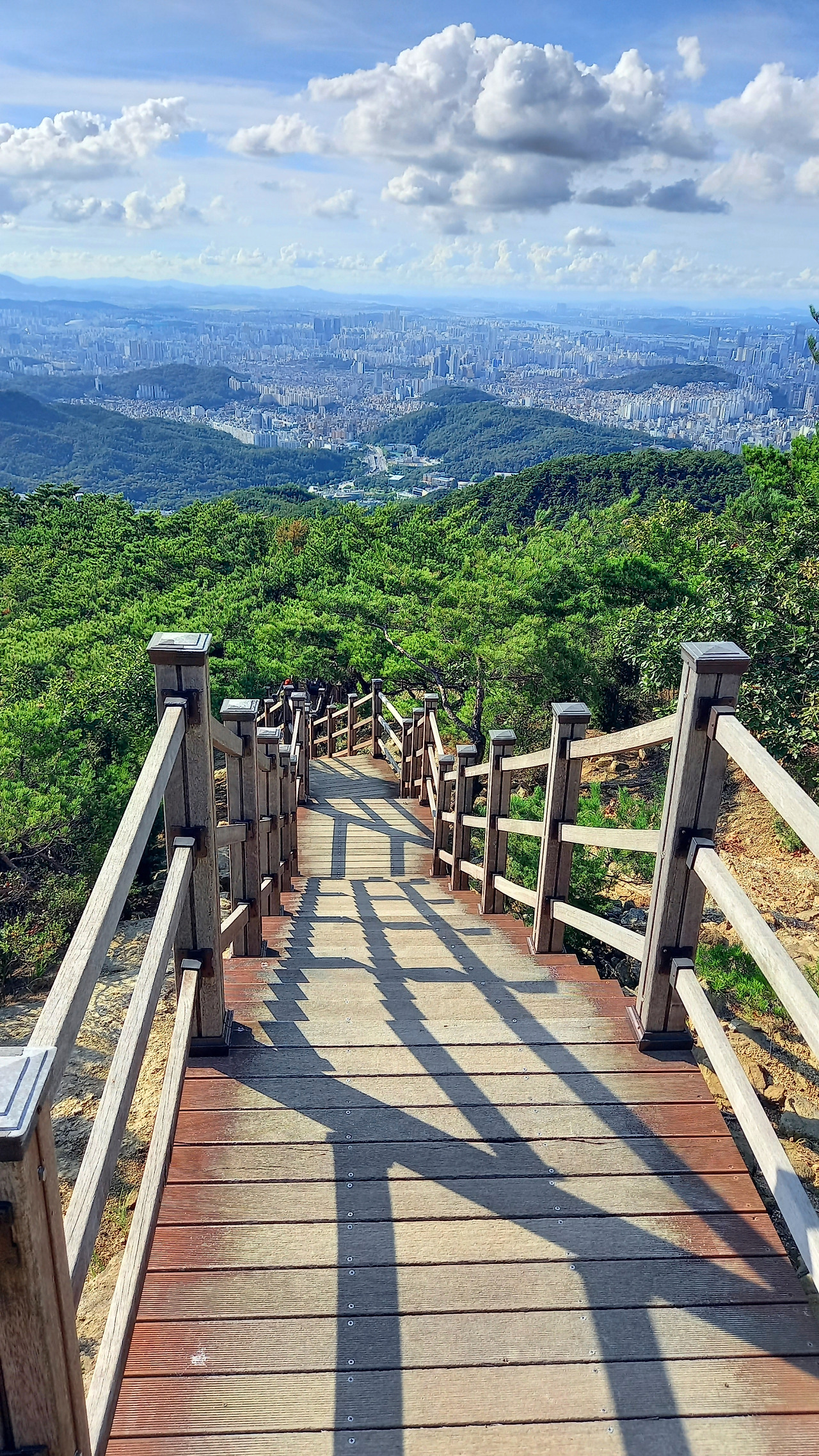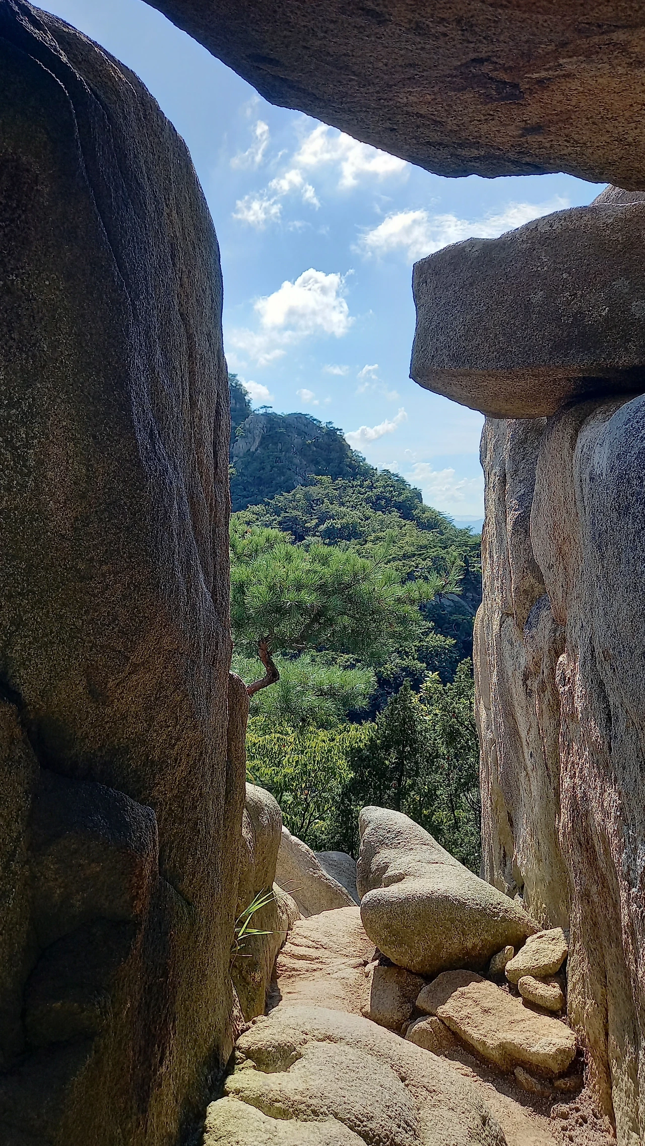 하산길은 가파른 데크길이 이어지는데 풍광이 아주 좋다. 그 어디를 돌아보아도 멋스럽다. 데크길 끝나니 역시나 웅장한 암릉길이다. 내리락 오르락 한참 간다. 온몸에 땀이 촉촉하다. 사당역 가는 길 길다. 돌문바위, 마당바위 지나서 시간을 보니 오후 5시가 넘었다. 데크 쉼터에서 쉬어가니 숲에서 천연 바람이 불어온다.