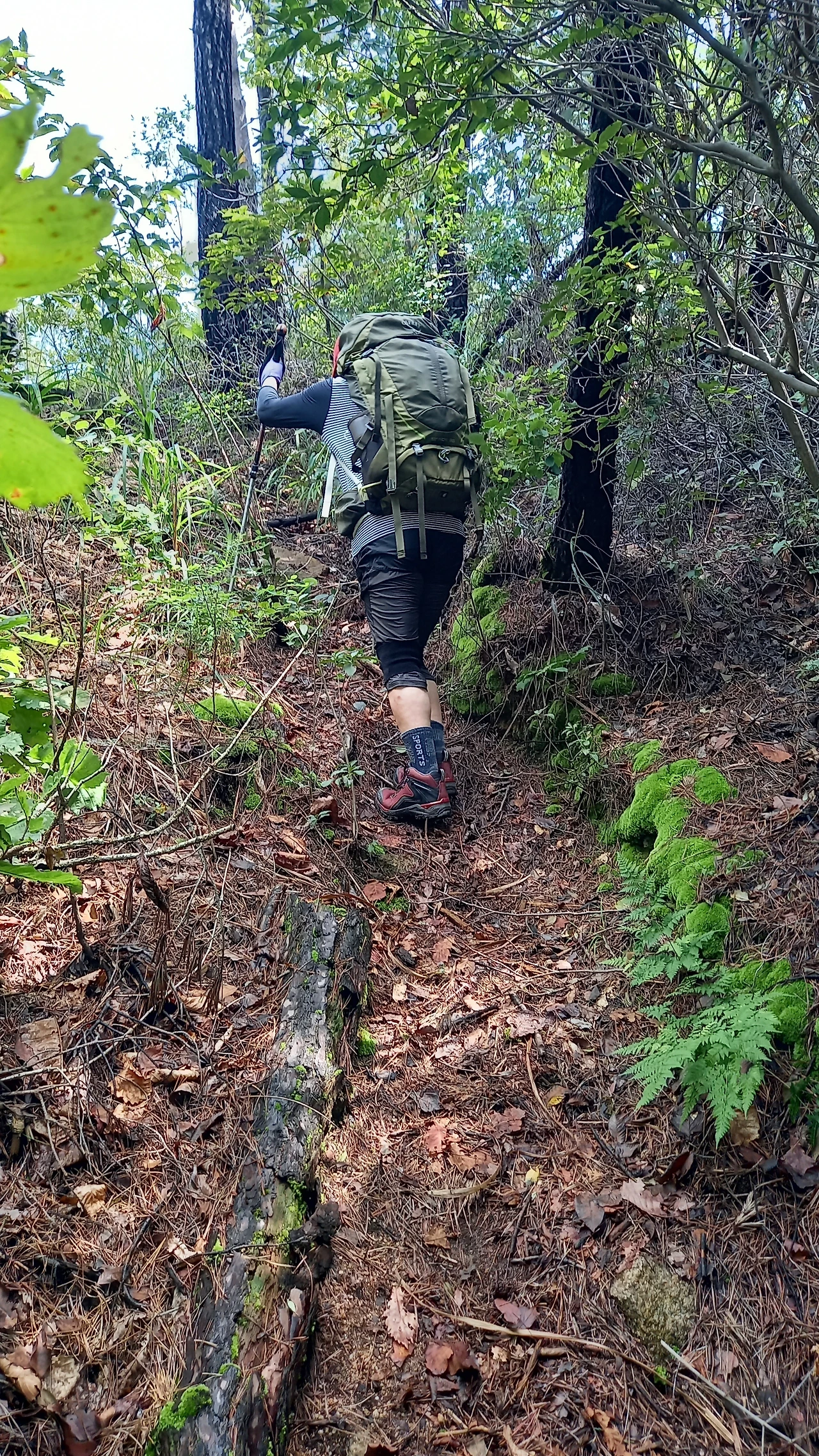 우리는 짐을 모두 꾸려서 젖은 옷 상태로 배낭을 메고 산을 오른다. 옷이 젖어서 땀도 안 흐르고 시원하다.