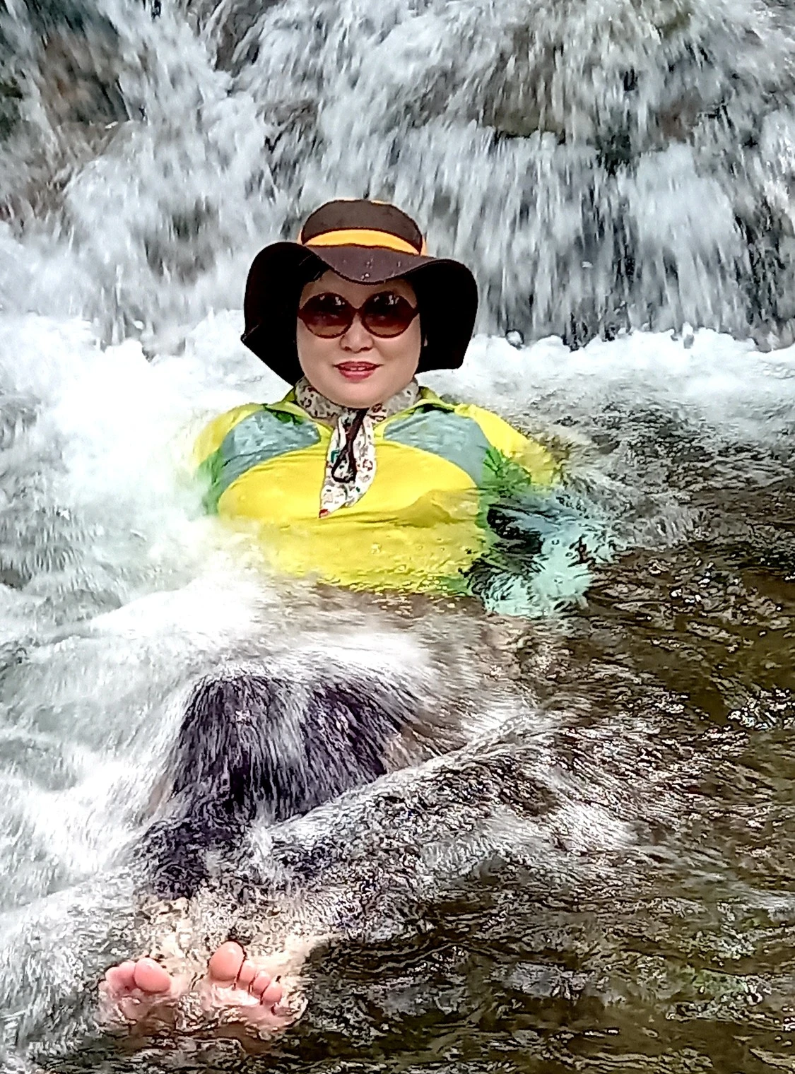 어서 들어오라는 신호이다. 우리 둘도 산행할 때 계곡 물에서 옷 입고 알탕 하는 걸 무지 좋아한다. 여산우님 들어가고 나도 들어간다.