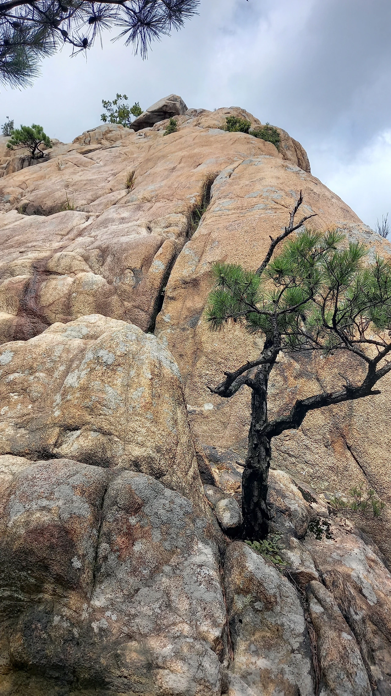 그렇지만 우리는 본격적인 산행을 시작한다. 암릉, 암릉, 기괴한 암릉들이 계속해서 나타난다. 끙끙대며 오른다. 암릉 위에 서면 사방팔방 조망이 화끈하게 터진다. 사람 사는 동네와 아파트들, 기암괴석, 지나온 암릉들, 연주대 쪽 통신소와 산봉우리들과 산 그리메, 저 멀리 남산타워까지 그림 같은 풍경들이 시시각각 펼쳐진다. 처음 타보는 관악산 학바위능선이다. 너무 위험해 보이는 암릉은 생략하고 우회로를 걸어보지만 암릉을 꽤나 많이 탔다.