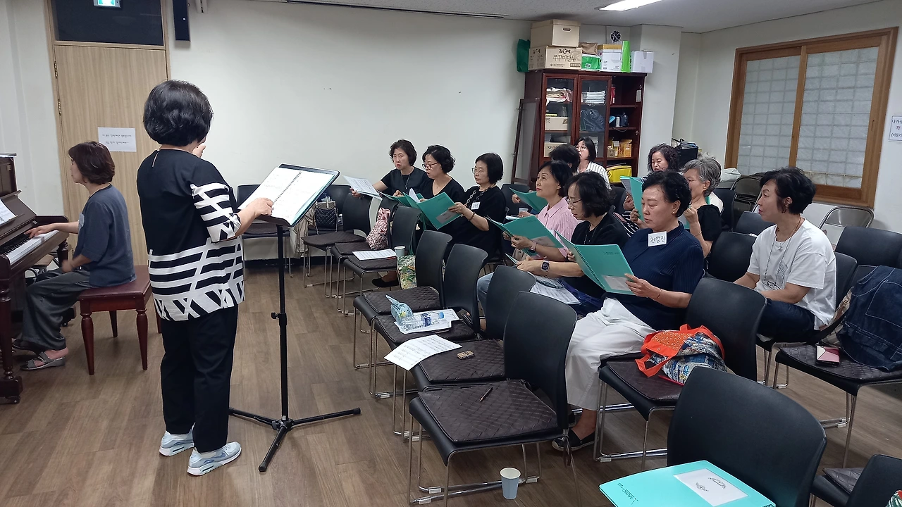 이화 동창회 배꽃방으로 이동해서 합창 연습을 한다. 박은미 총무님이 악보도 준비해서 파일에 넣어서 준비를 했고 거기다가 악보 체크할 때 쓰라며 연필까지 챙겨 오는 섬세함을 더했다. 정혜림 회장님 인사를 듣고 차은미 친구가 지휘를 하는데 조용조용한 목소리로 칭찬도 해가면서 너무나 즐겁게 합창 지도를 한다. 능수능란한 아름다운 선율 김희선 친구가 명반주라며 노래하는 친구들 칭찬이 자자하다.