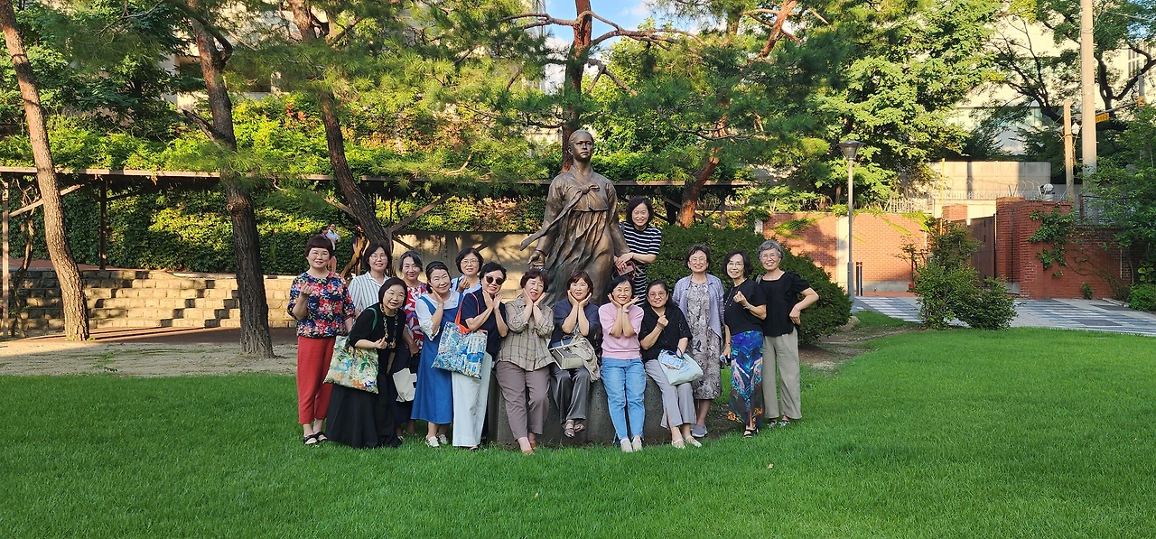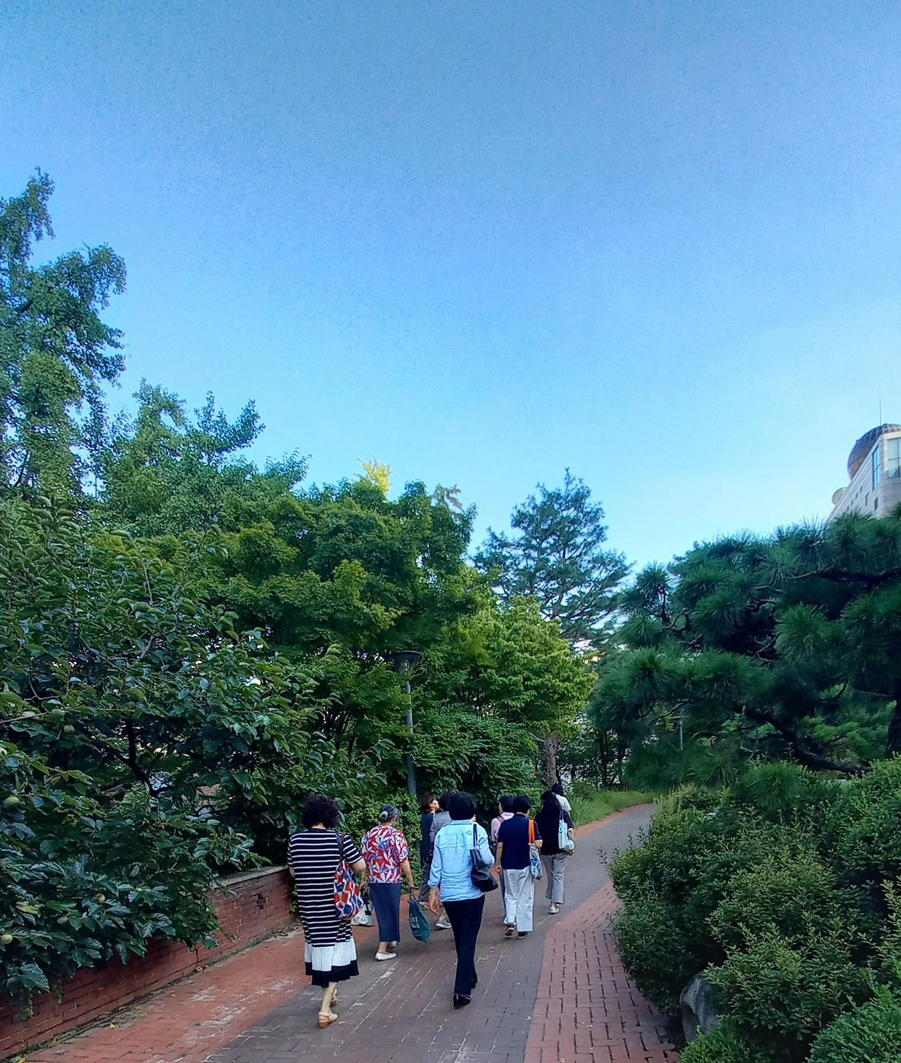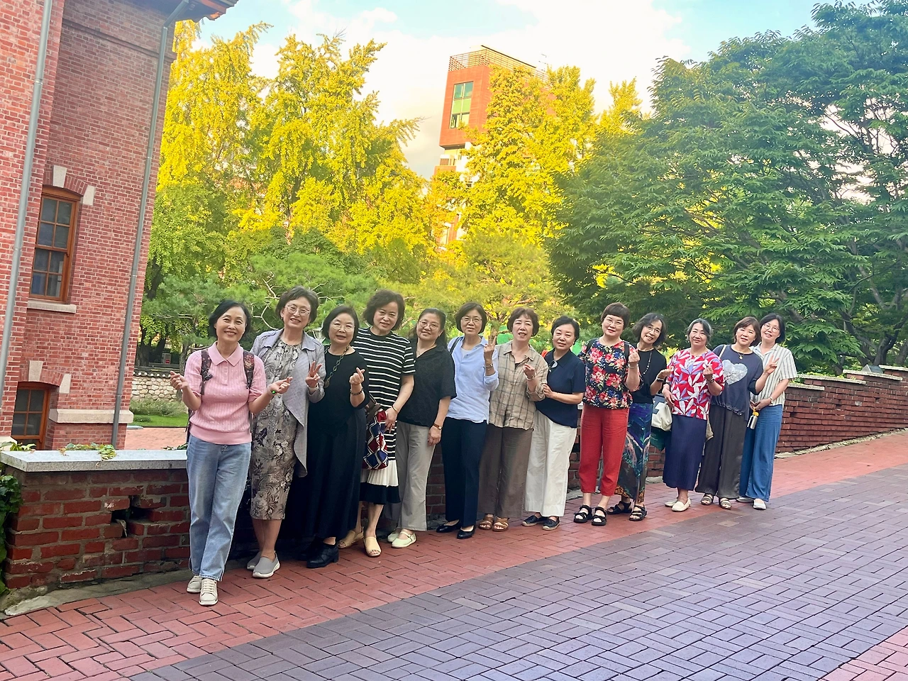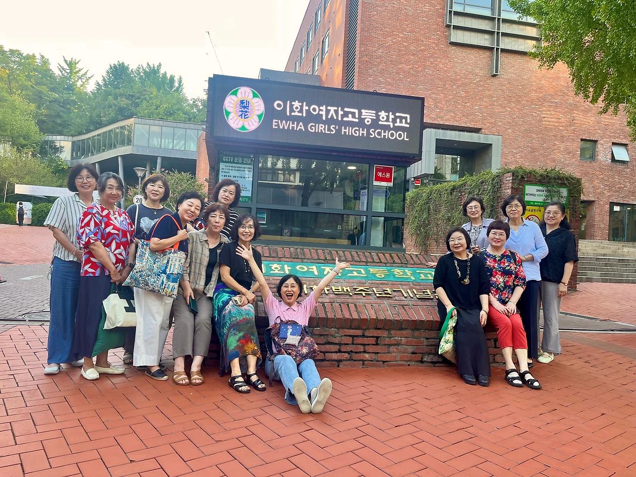 이화 동문과 교정을 지나며 단체사진도 남긴다. 이화 이름표와 이화박물관 옆 돌길, 유관순 열사 동상 앞에서 즐거운 시간이다. 사진 찍기 좋아하는 이들은 친구들과 함께, 또는 개인 사진도 찍어본다.