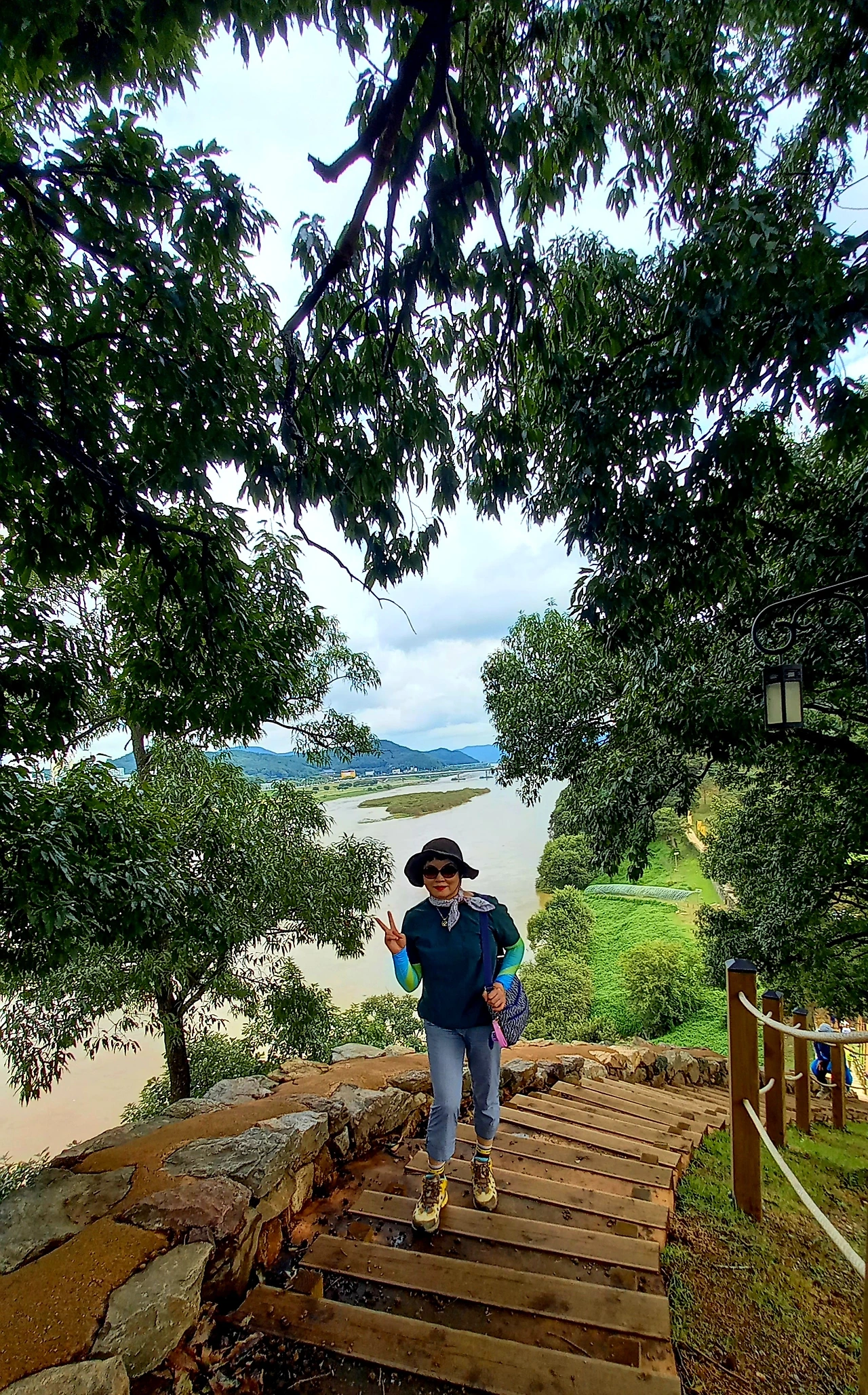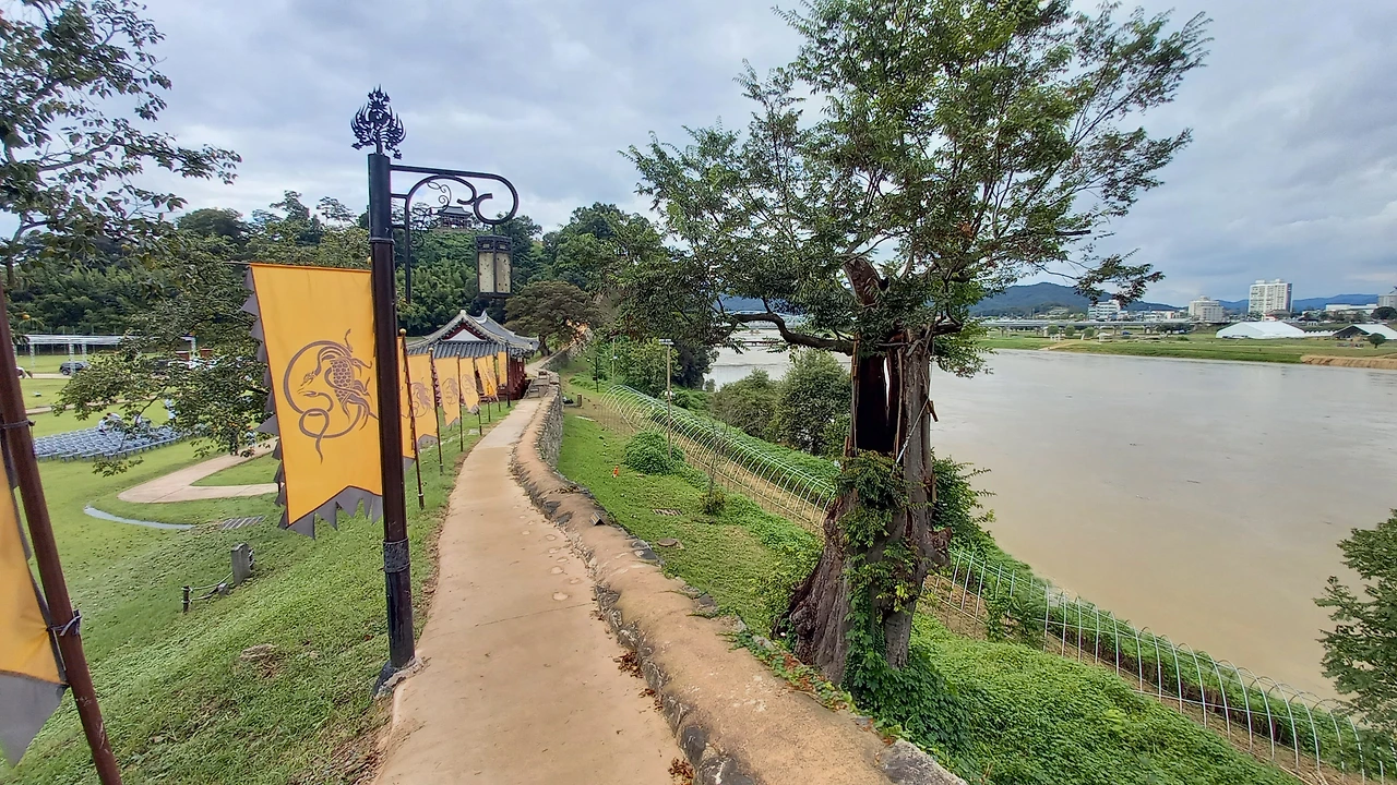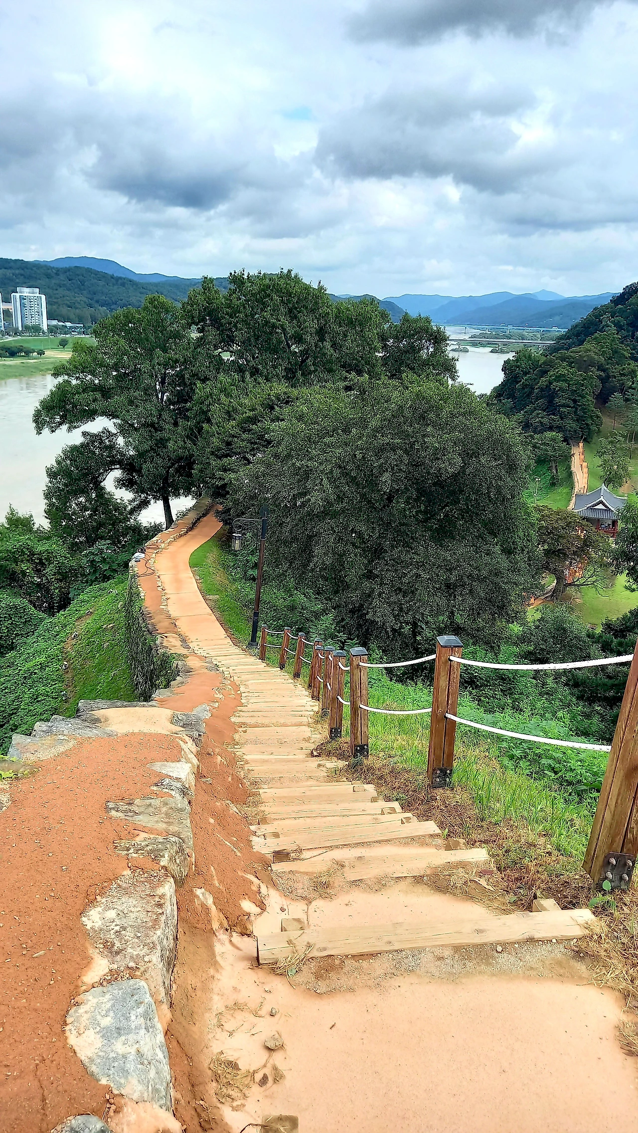 금강을 조망하며 걷는 공산성 성곽길은 고목들이 어우러져 멋진 풍경을 자아낸다. 조금 가파른 계단들도 있는데 올라서면 금강과 성과길과 고목이 어우러져 그 또한 진풍경이다! 혼자 돌고 있기에 멋진 풍경에서는 기다렸다가 사람을 만나면 사진 부탁을 해서 인생샷을 남긴다.