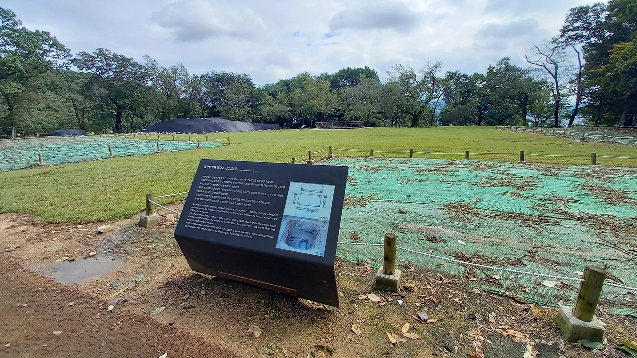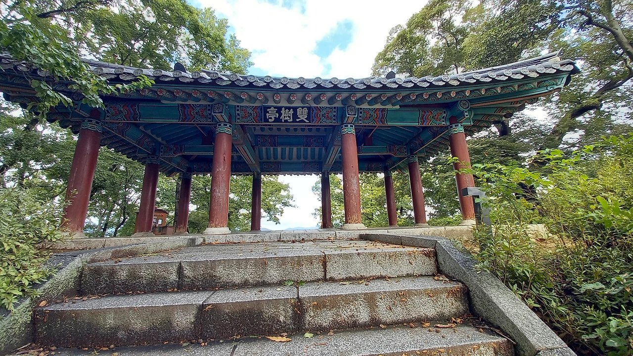 백제시대 저장고인 목곽교를 지나 조금 높은 곳에 위치한 쌍수정에 올라가 본다. 조선시대 세워진 건축물인데 인조가 이괄의 난을 피해 잠시 공주에 머문 것을 기념해서 세웠다고 한다. 이곳에서는 금강이 살짝 보인다. 나무를 타고 오르는 담쟁이가 빨갛게 물들어 곱다. 공주 왕궁터일지도 모른다는 발굴터를 지나 효자길로 들어섰는데, 아무래도 시간관계상 원점으로 돌아가는 게 좋을 것 같다. 공산성에서는 1시간 30분이 주어졌는데 한 바퀴를 다 돌려면 2시간이 넘게 걸린다고 했기 때문이다.