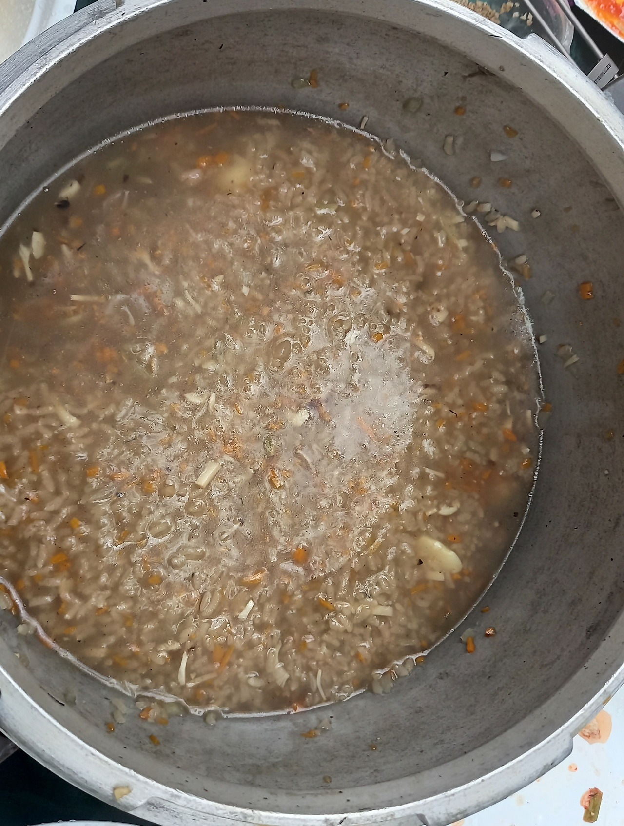 압력밥솥 뚜껑에서 김을 빼니 금방 우리들을 안개 속으로 몰아넣는다. 김을 쐬니 피부가 뽀송뽀송 자연미인도 되겠다.
