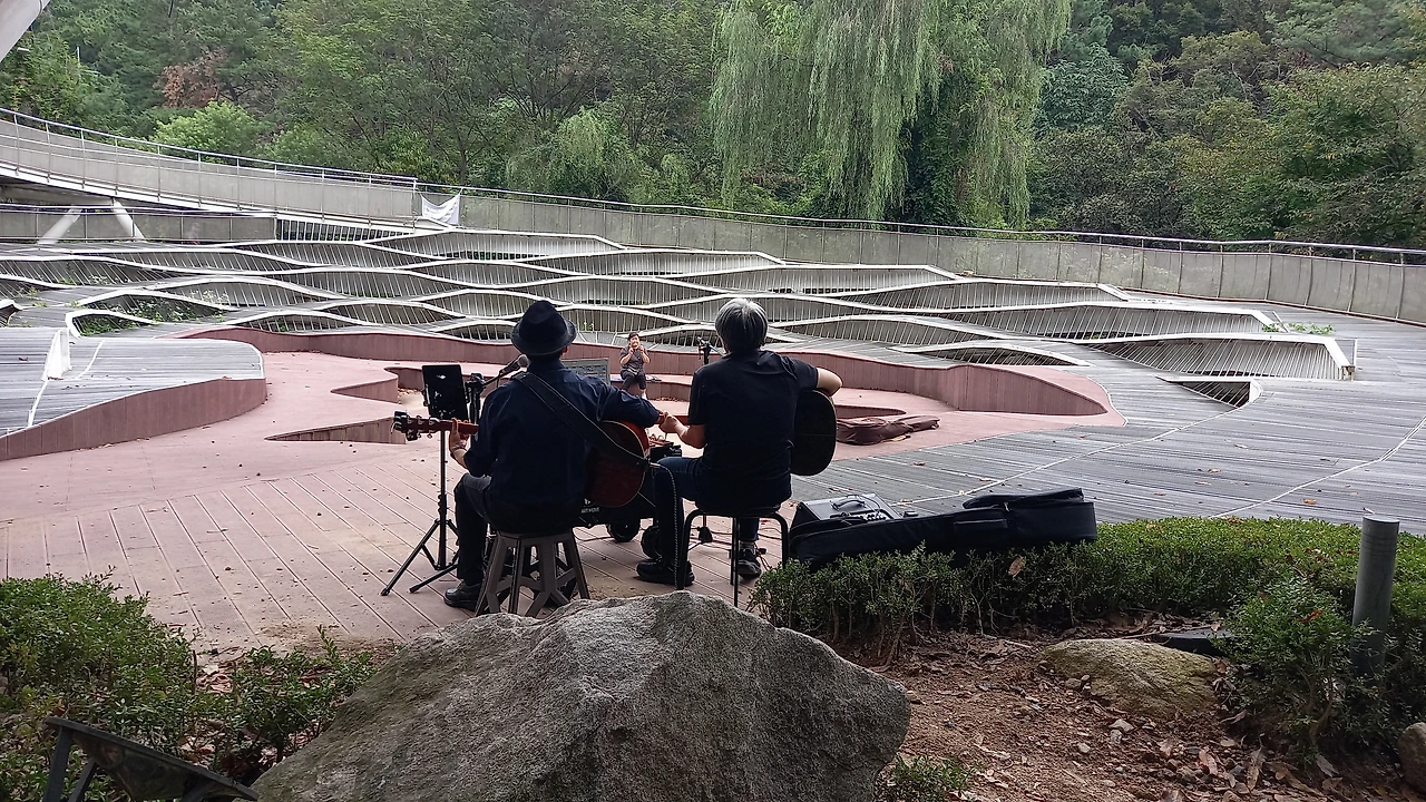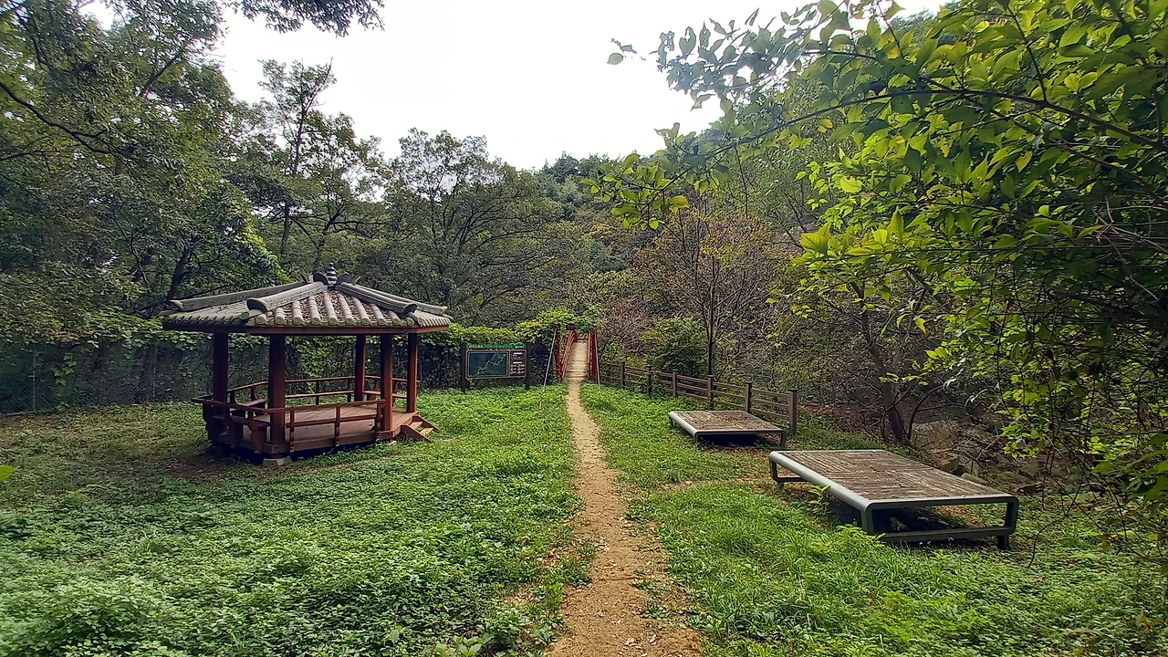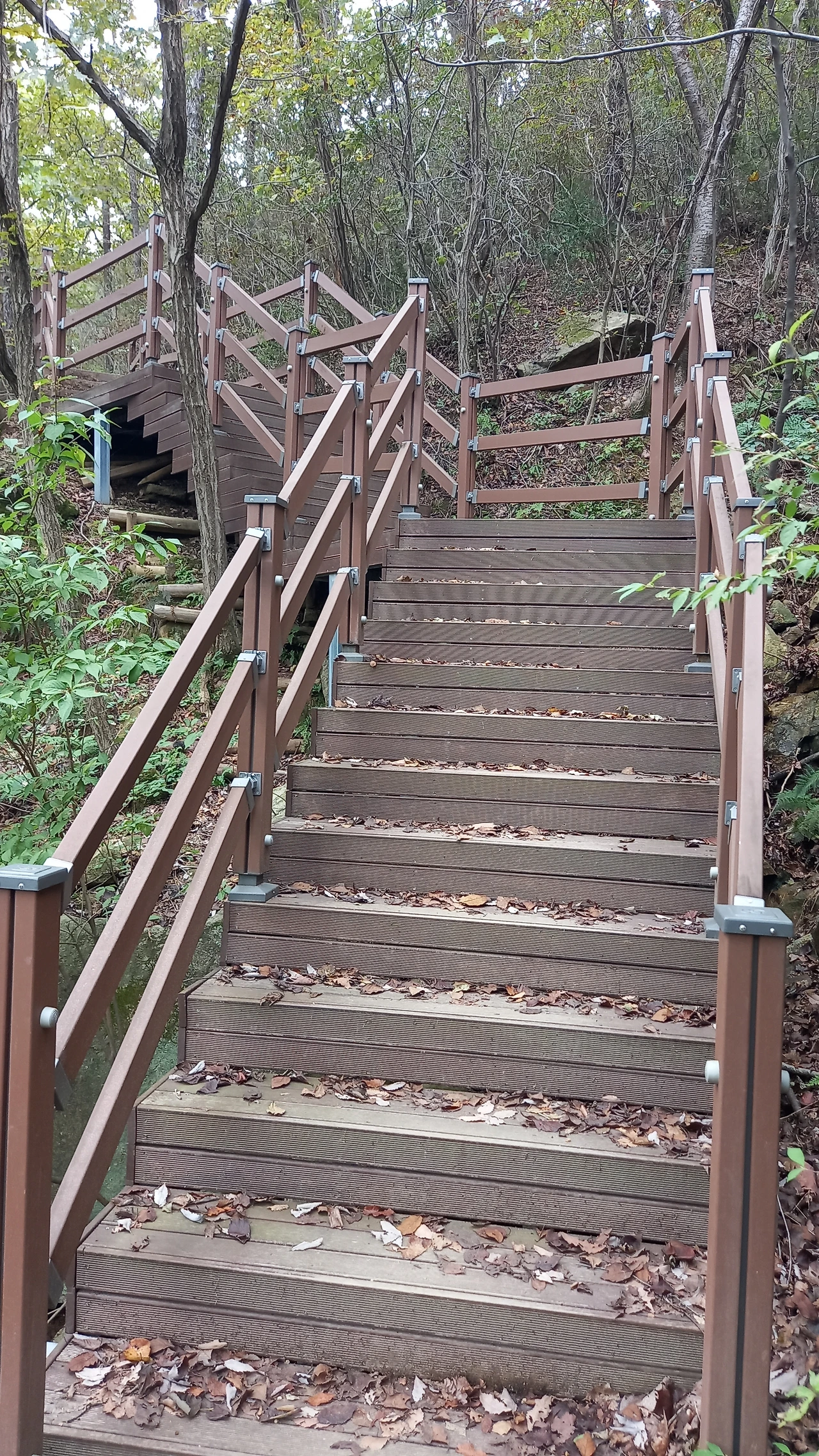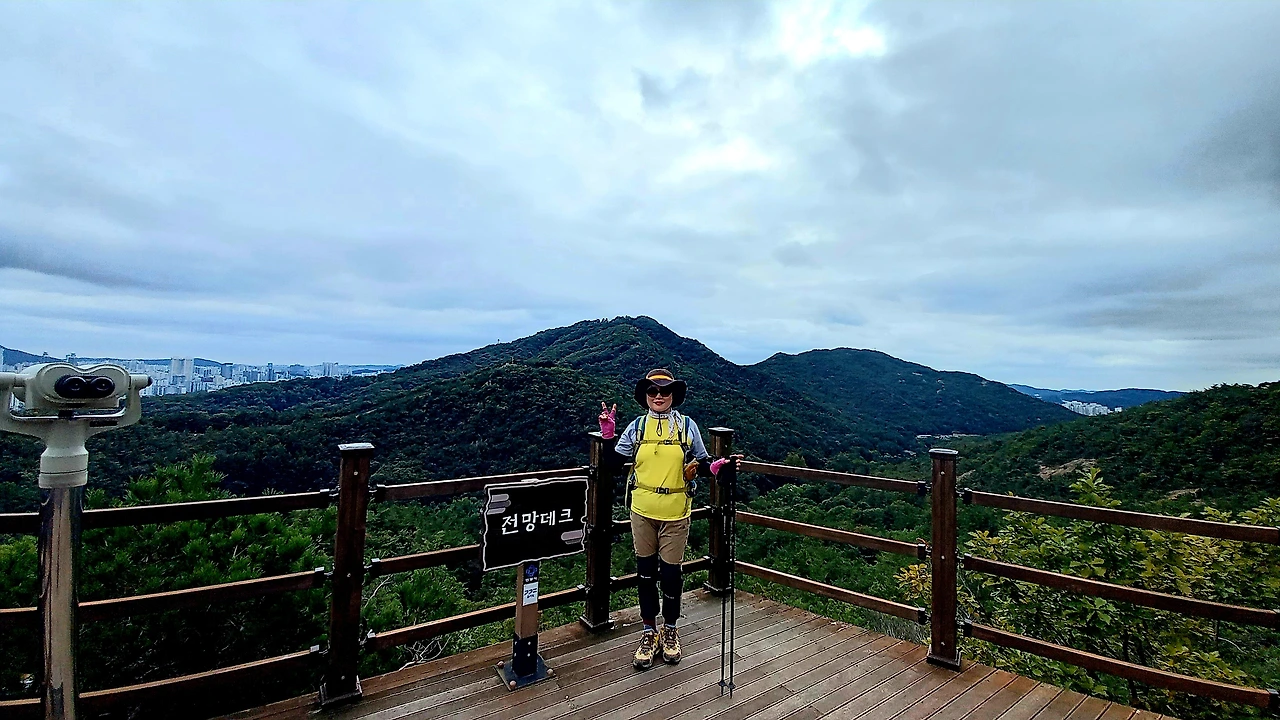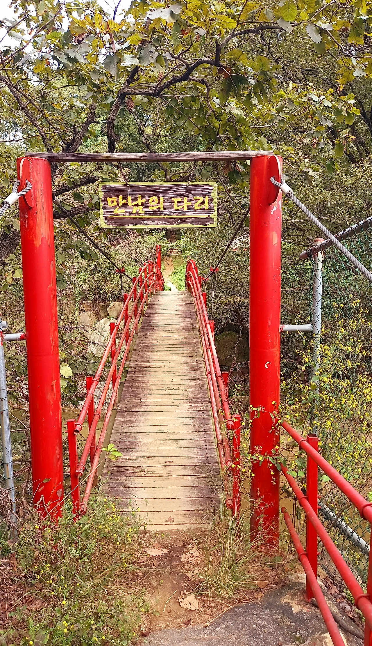 무너미고개 지나 서울대관악수목원과 안양예술공원 쪽으로 걷는다. 길은 완만한 내리막길로 아주 좋다. 서울대관악수목원은 통과할 수가 없어서 우회로를 걷는데 빨간 '만남의 다리'가 멋스럽다. 거기서부터는 약간의 오름구간도 있고, 전망데크가 몇 군데 있다. 주변 산 봉우리들과 사람들이 사는 아파트를 조망해볼 수 있다. 어디가 어디인지 알 수는 없지만 그저 바라보는 것만으로도 기분이 좋다. 간혹 사람들이 둘씩 셋씩 혼자도 지나가지만 사진 부탁은 안 한다. 조용히 사색하며 걷는다. 오롯이 나만 있는 이 공간이 참 좋다. 데크길 오름길에서, 전망 데크에서, 태국 젊은이 넷을 만난다. 함께 여행을 왔단다.