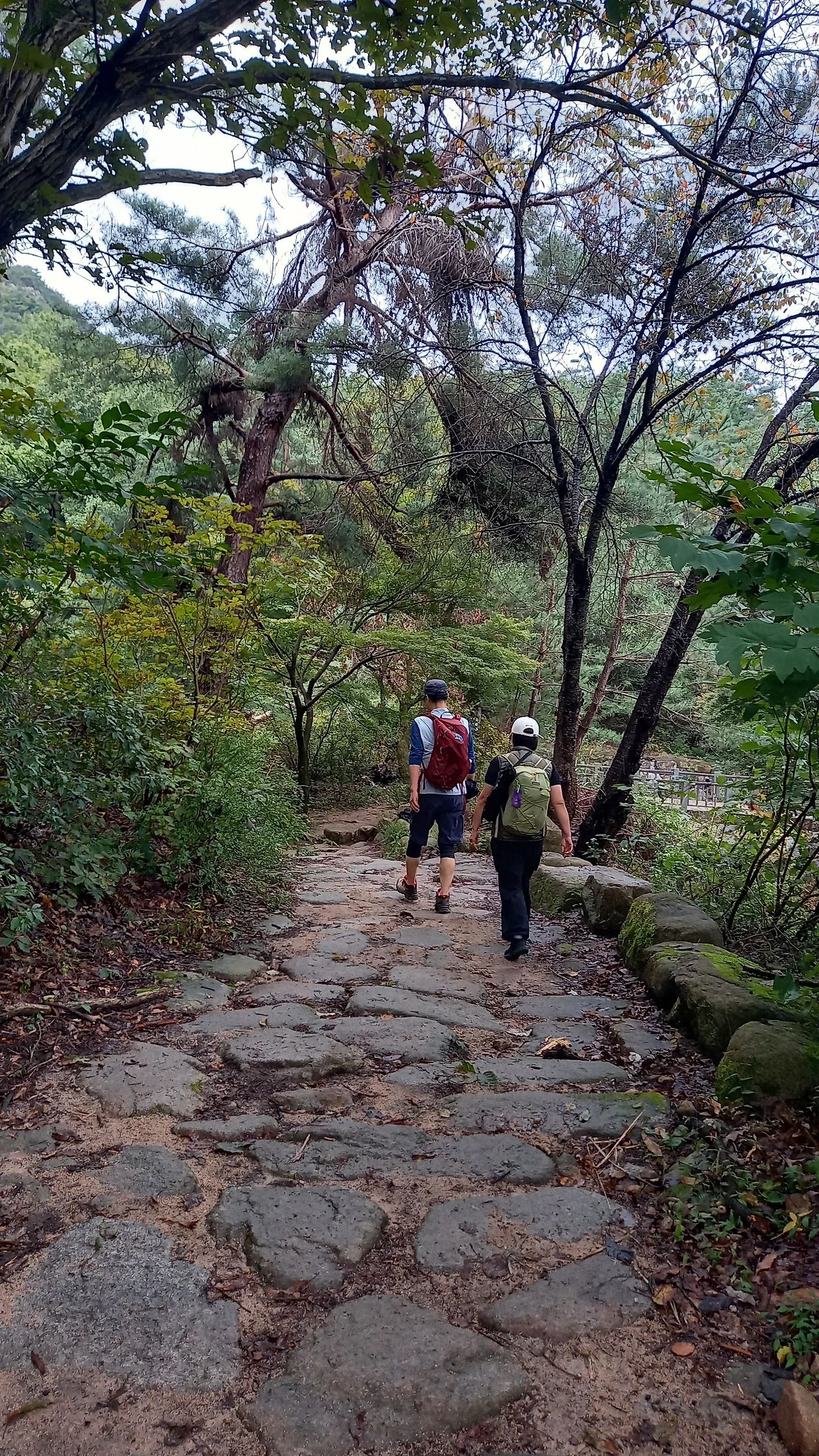 덕분에 혼산 기념샷을 남긴다. 이들과는 자주 함께, 앞서거니 뒤서거니 한다. 외국인 남자들이라서 살짝 경계를 했지만 그들과 함께라서 또 심심하지 않았다. 오늘 걸은 게 1만 6천보가 넘었다. 나는 보통 시속 2km이니까 약 8km를 걸은 셈이다. 1시부터 걷기 시작해서 4시 30분 하산 완료했으니 3시간 30분 소요되었다.