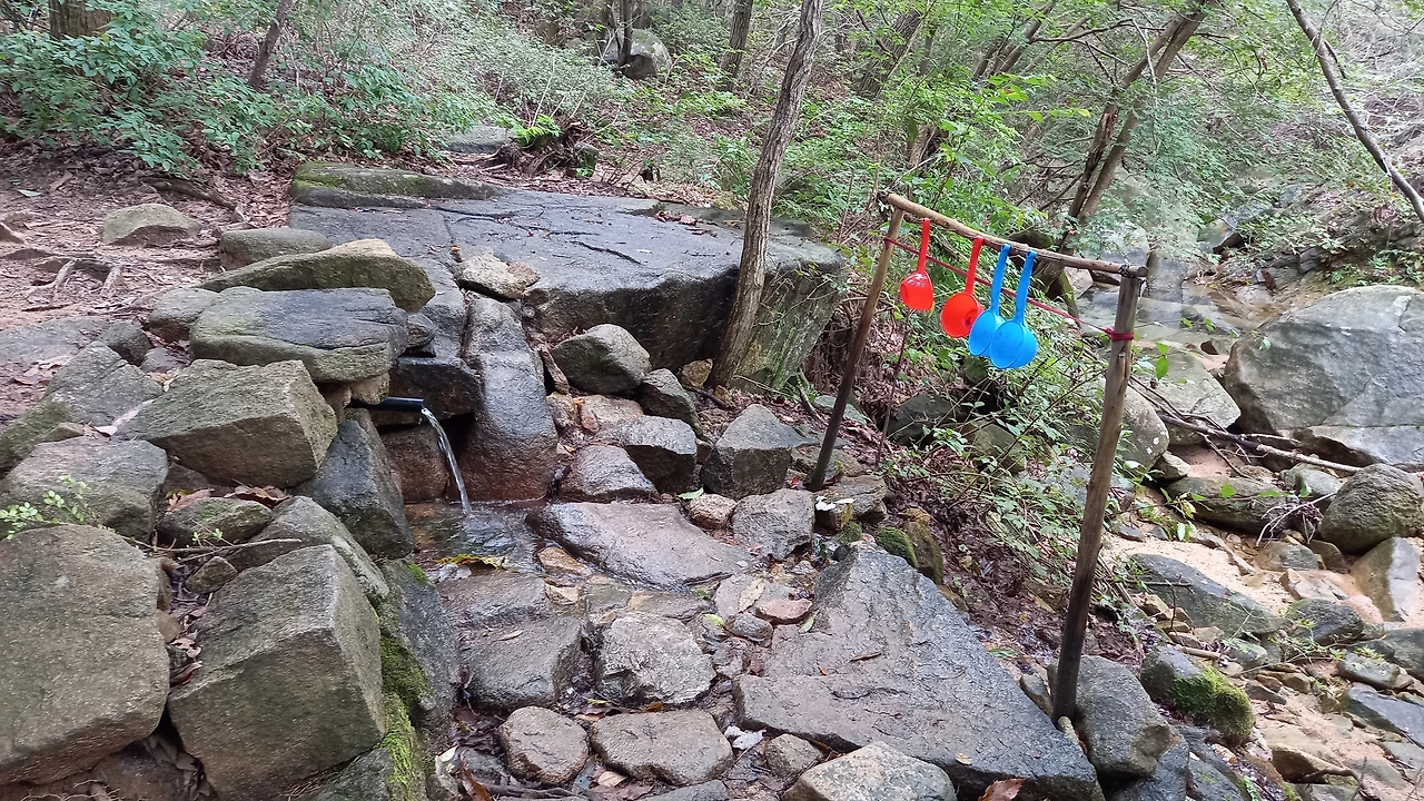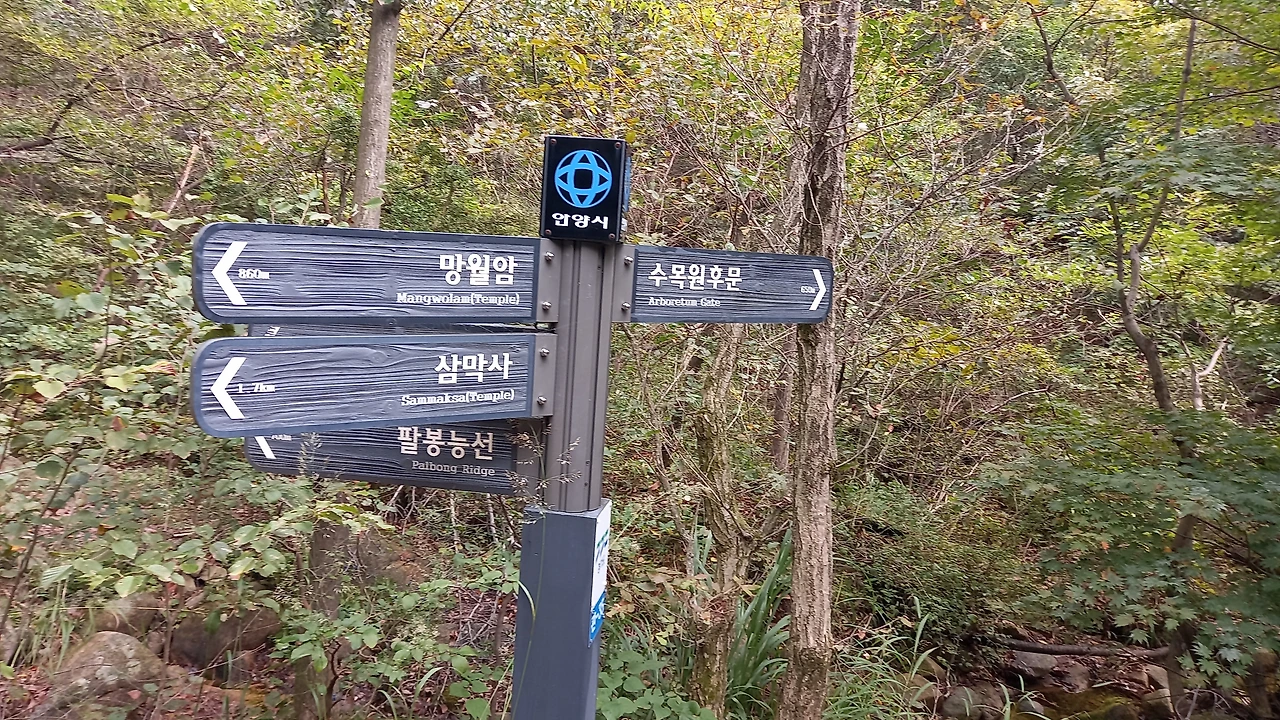 그리하여 약수터 지나서 잠시 쉬다가 두야 대장님, 산골지기님, 산새 자문위원님, 세 분은 거기에서 그냥 내려 가신단다. 전력님과 나는 따로따로 원하는 산행을 해보기로 한다. 전력님은 삼성산 쪽으로 오르고, 나는 원래 예정대로 관악산역에서 차로 이동 후 밥터로 왔으니 거기서부터 무너미고개~서울대관악수목원~안양예술공원 코스로 진행하기로 한다. 혼산이다!