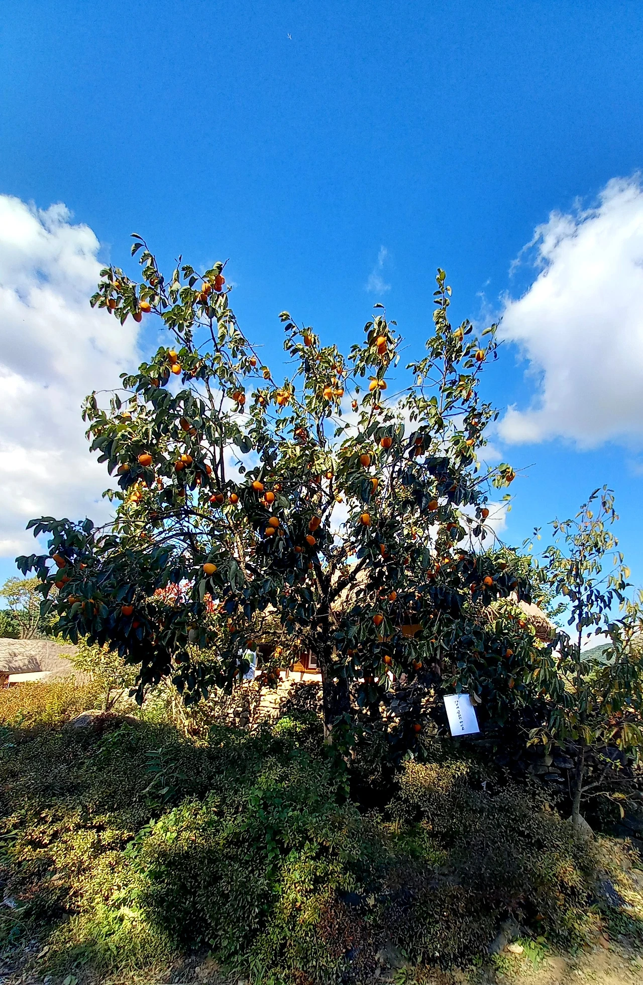마을 한가운데는 수령이 670년 된 고목 보호수가 있다. 키가 커서 하늘을 찌를 듯한데, 나무 둥치는 시멘트로 보수를 해놓았다. 아주 오래 산 나무이기에 외암마을의 역사라고 할 수 있겠다.
