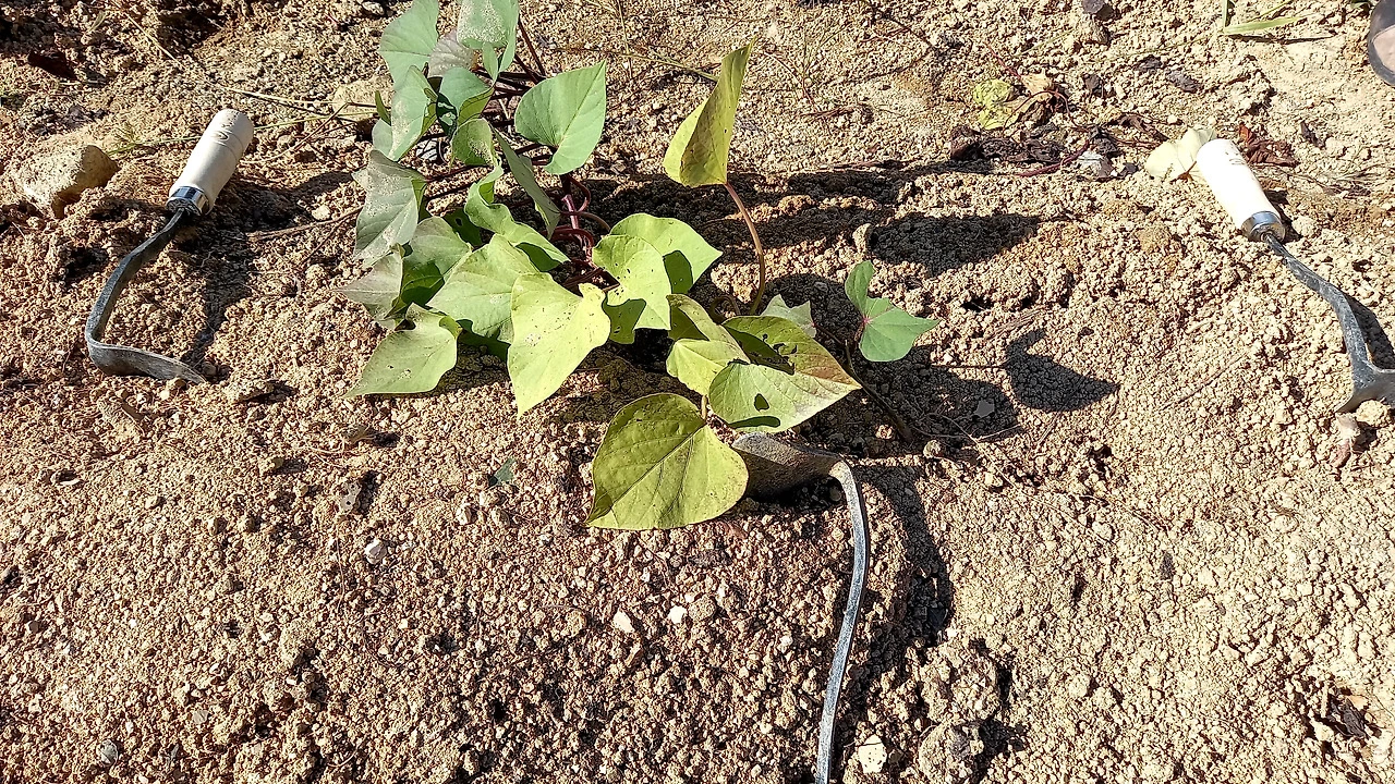 외암마을의 소리 없는 환영 인사를 받으며 개천을 지나 외암마을로 들어선다. 가장 먼저 고구마 캐기 체험을 한다. 체험이라야 자기 앞에 놓인 호미를 들고 고구마 줄기 하나를 잡아 달려 나오는 고구마를 망에 담는 정도이지만 말이다. 나는 어려서 촌시골에 살 때, 산밭에 고구마를 심어도 보고 캐어도 보았다. 방에 수숫대로 엮어서 만든 고구마 저장 공간에 고구마를 수북이 쌓아놓고 거의 겨울 내내 고구마를 먹었다. 동치미나 김치와 함께 먹는 고구마는 주 식량이기도 했지만 나는 질리지도 않고 맛있게 잘 먹었다.