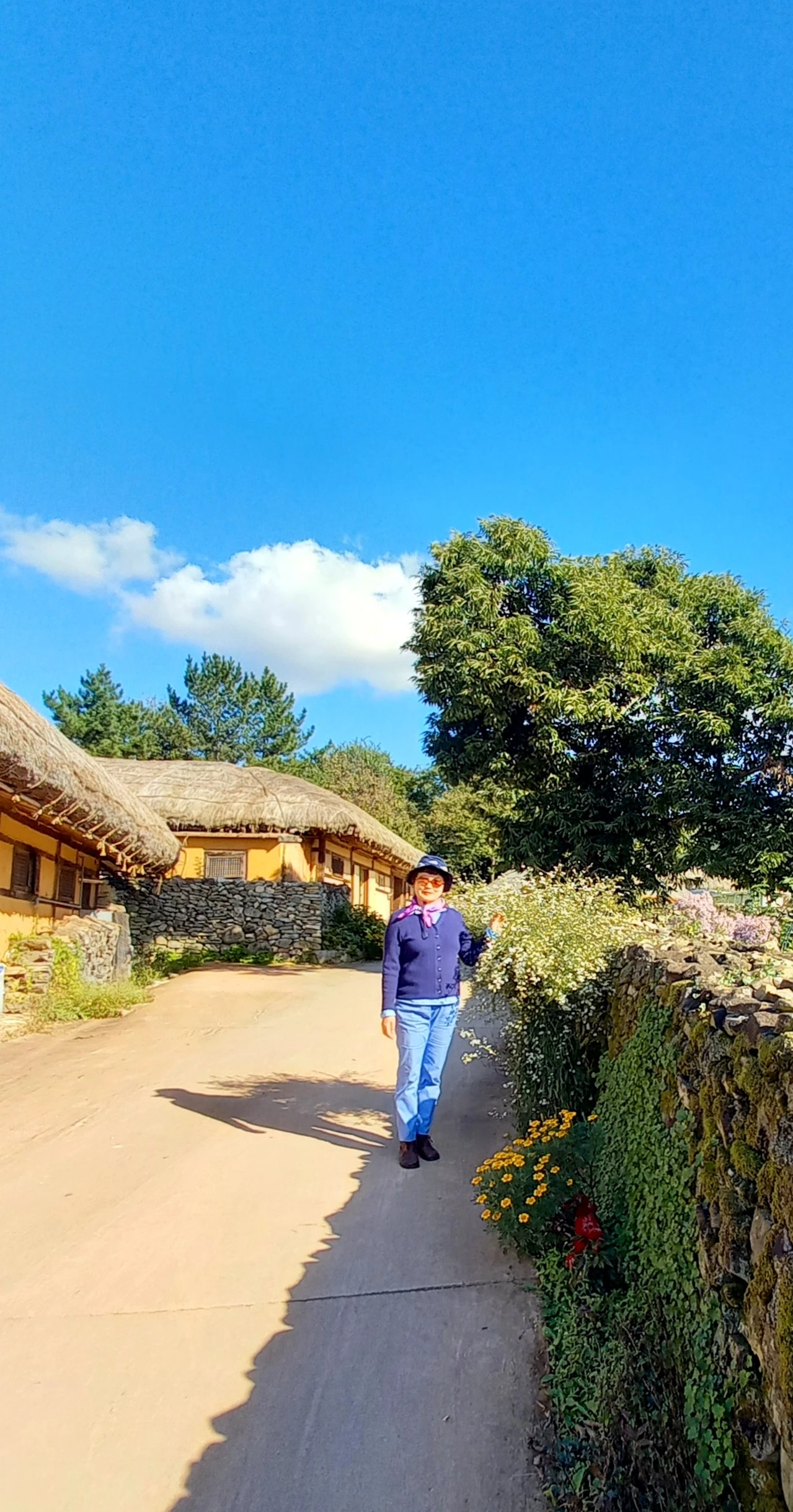 이제 천천히 외암민속마을을 돌아본다. 옆 짝꿍이랑 같이 살방살방 걷는다. 기와집, 초가집 어우러져 있는데 집집마다 특색이 있다. 다들 예쁘게 잘 꾸며놓고 사신다. 어느 집은 꼭 예술가의 집 같다. 커다란 항아리를 화분 받침대로 사용해서 꽃을 키우는데 얼마나 멋이 있는지 한참 동안 감탄하며 들여다본다.