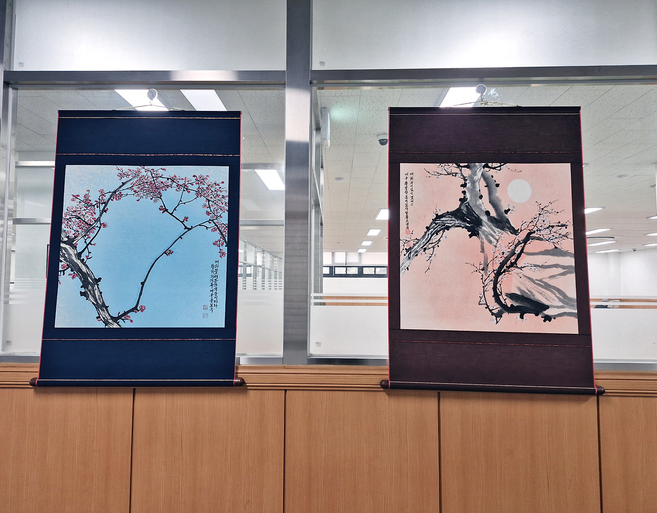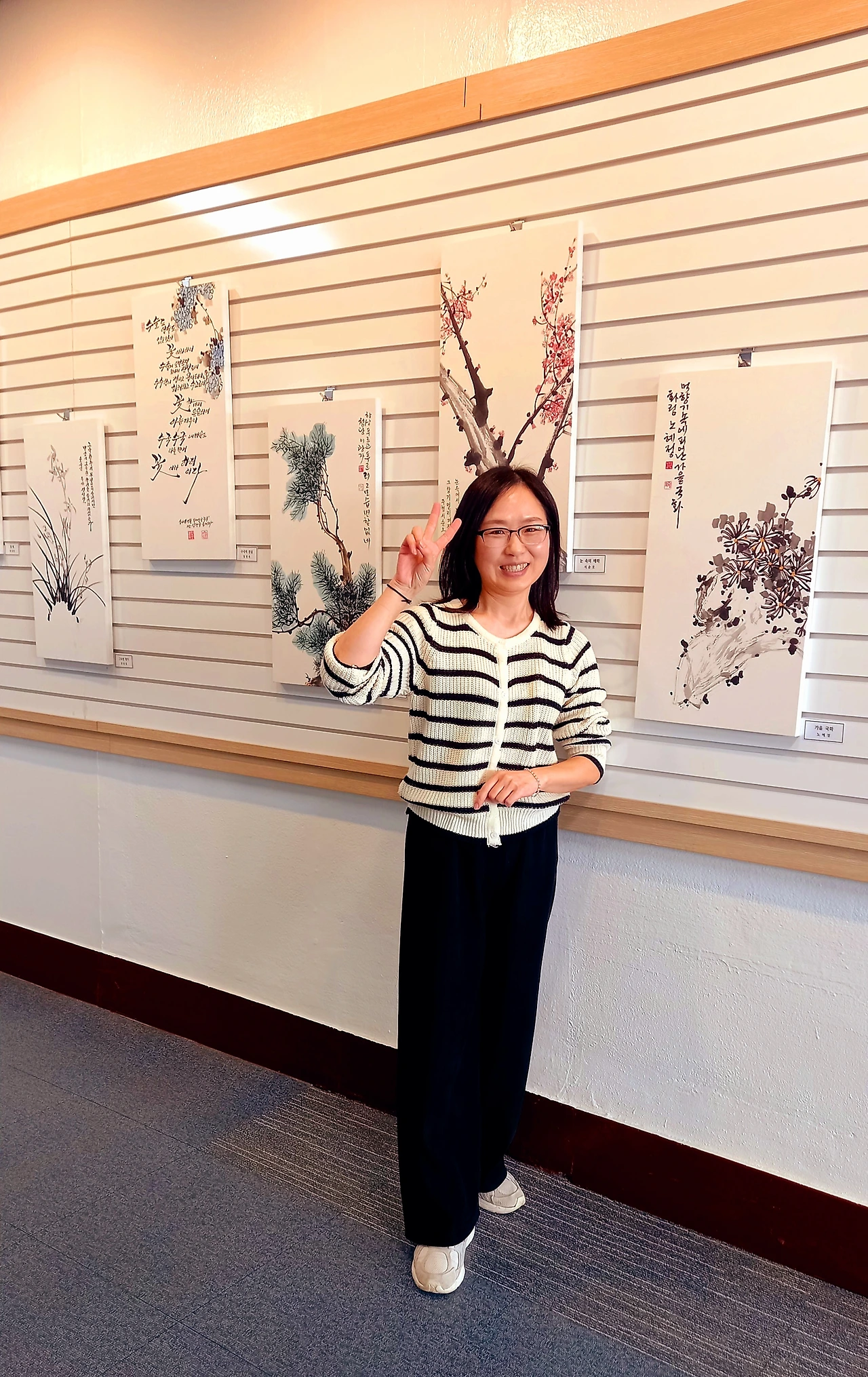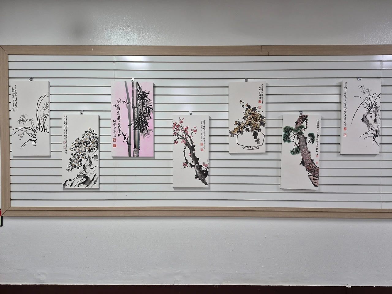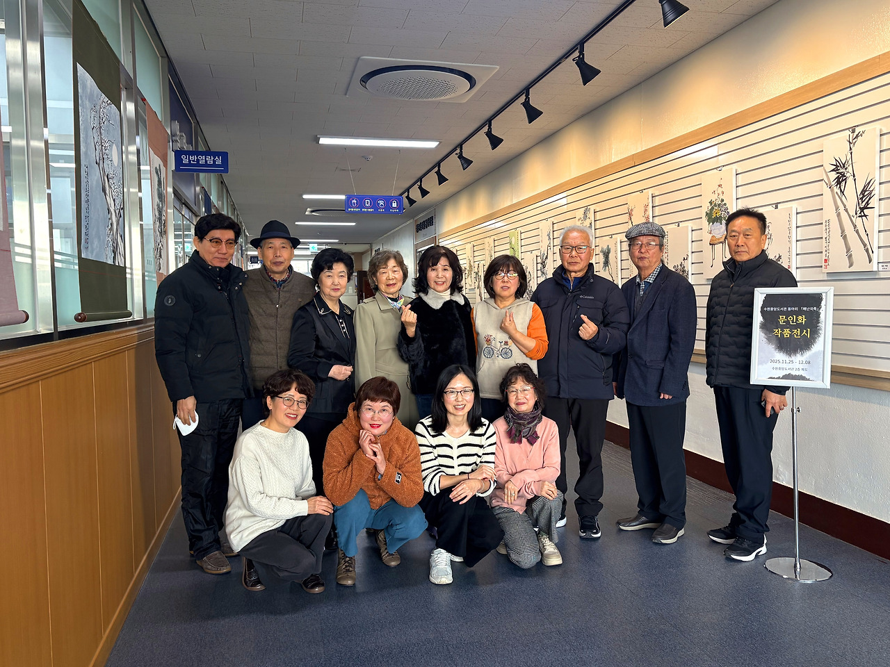 중앙 문인화 [매난국죽] 전시회는 2025년 11월 25일(화)부터 시작되어 12월 8일(화)까지 수원중앙도서관 2층 로비에서 작품 28점으로 만나볼 수 있다. 판넬 작품 21점, 족자 작품 8점이다. 나는 판넬 1개, 족자 1개, 두 작품을 전시 중이다. 원래는 판넬용으로 2개 작품을 냈는데, 동아리 인원수가 많고 전시 공간은 한정되어 있어서 1개를 뺐다. 다른 회원들도 그런 경우가 여럿 있다. 가능하면 지난해와 올해 시작한 신입회원들도 한 작품이라도 전시를 해야 하기 때문이다.