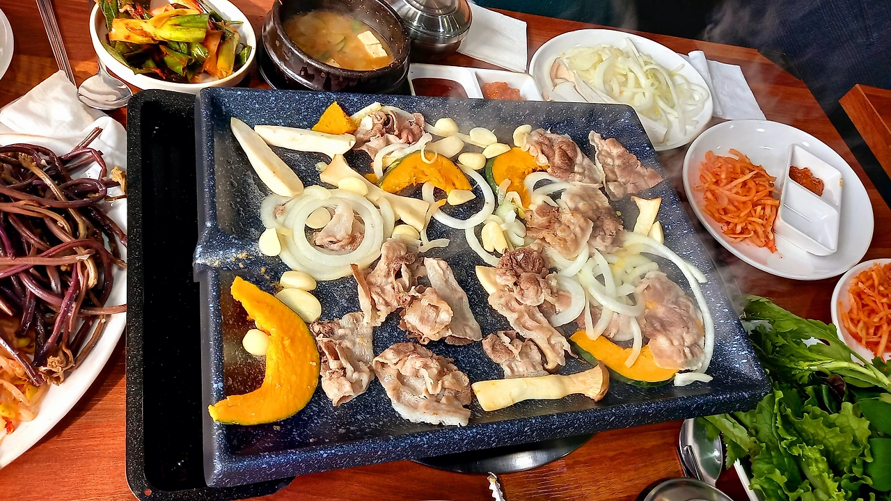 종강 회식은 화서동 <본가정육식당>에서 대패삼겹살로 푸짐하게 한다. 야채를 맘껏 가져다 먹을 수 있고 밥도 볶아 먹을 수 있어서 좋다.