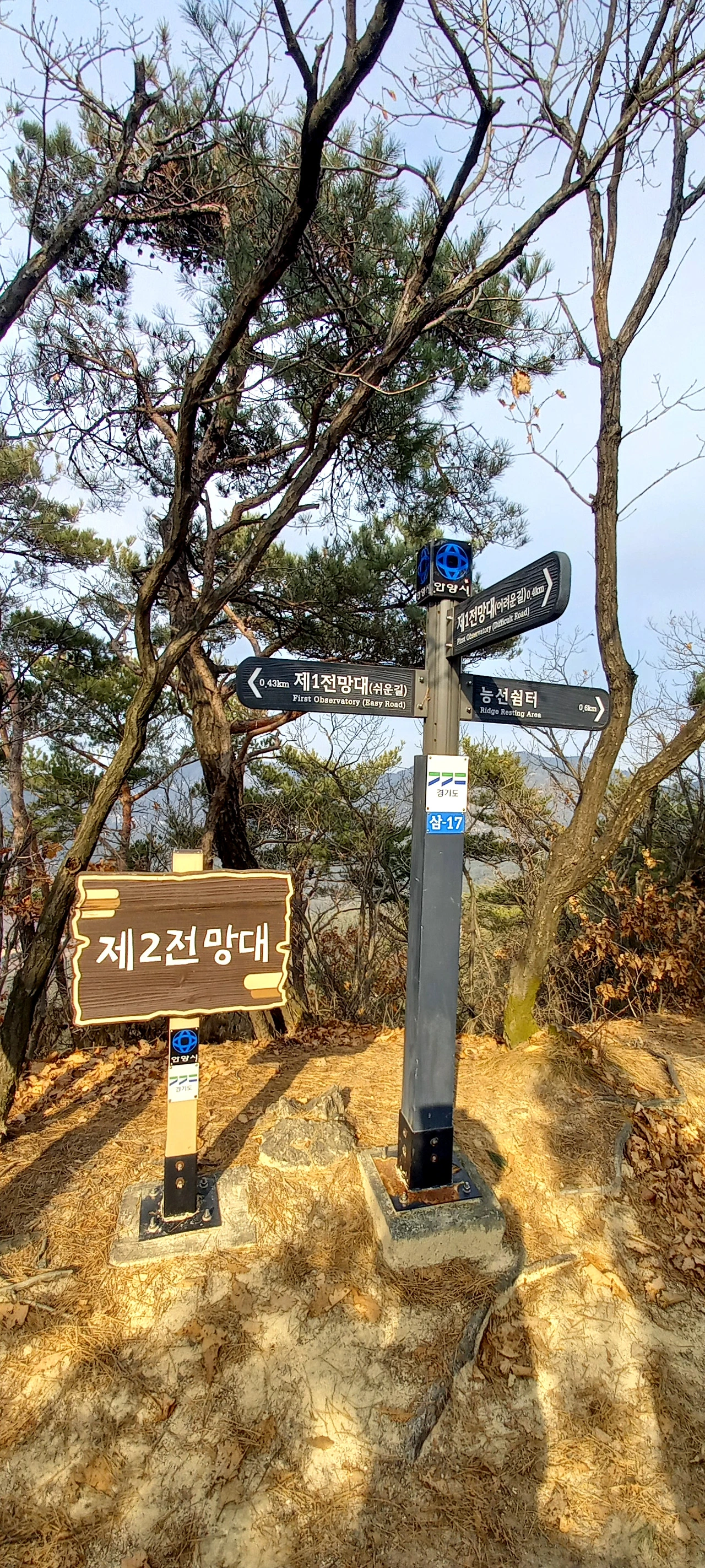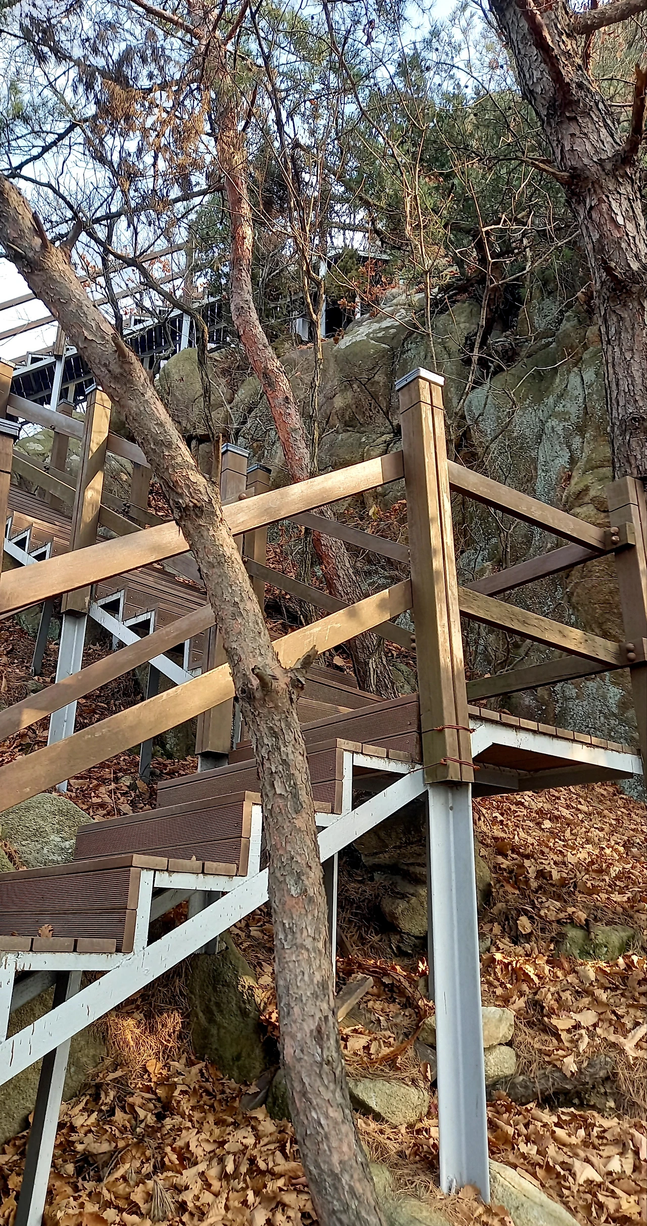 제2전망대까지 울퉁불퉁 암릉길이 이어지다가 끝부분에서는 가파른 데크길이 잠시 나온다. 다들 제2전망대 암릉 조망터로는 오지 않고 저쪽 길가에서 쉬고 있다. 나와 솔벗 방장님, 별 대장님만 사진을 찍고 합류한다.