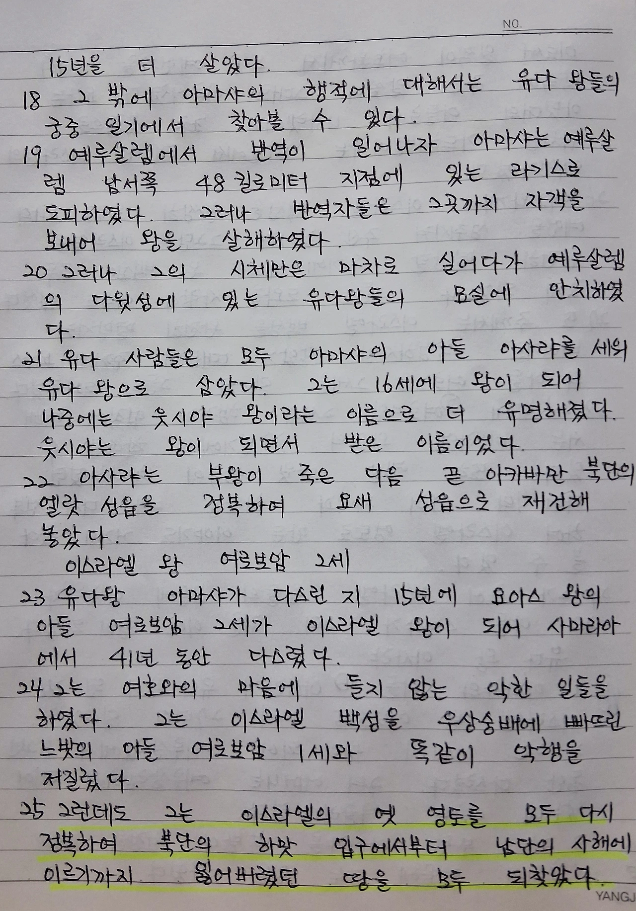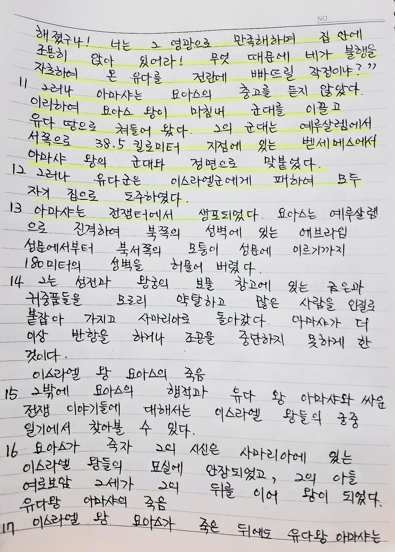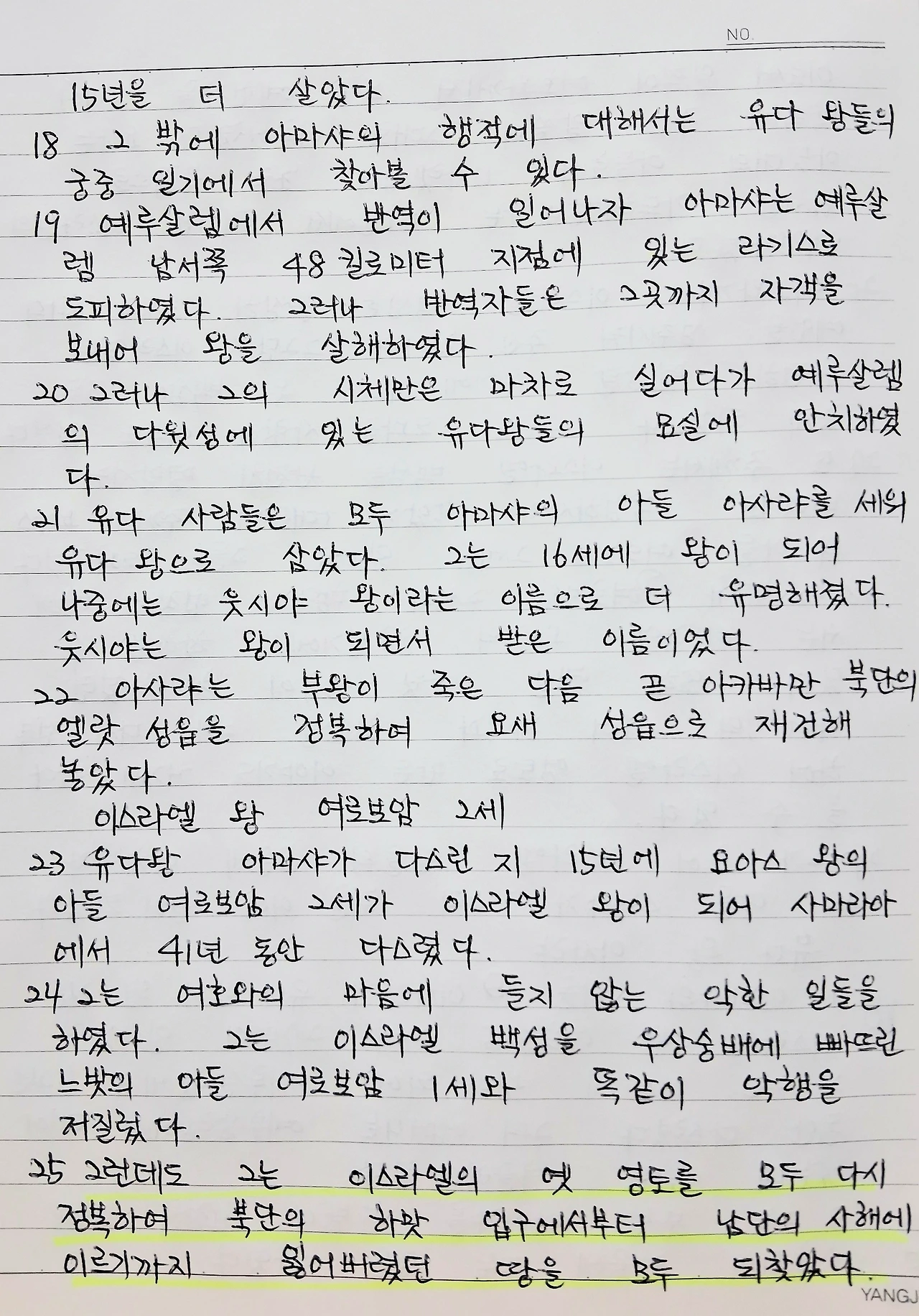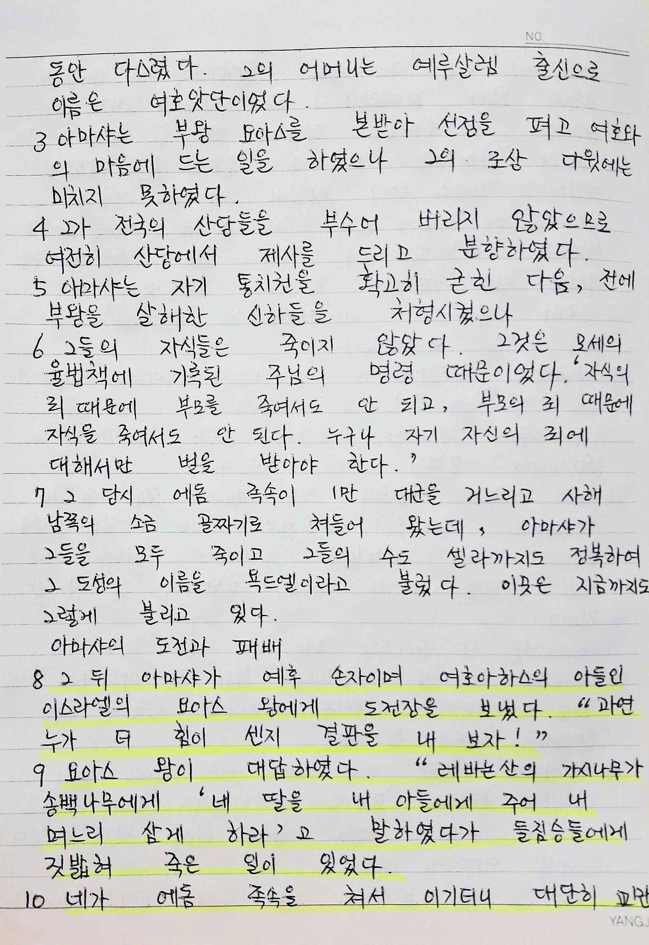 남북으로 분열된 북이스라엘과 남유다 왕들의 역사를 읽다 보면 하나같이 '부왕을 본받아'라는 말이 많이 나온다. 좋은 점이라면야 당연히 본받는 것이 좋겠지만, 나쁜 점이기에 안타깝다는 생각이 든다. 여호와 하나님이 선택한 백성 이스라엘이 하나님을 버리고 우상의 섬기는 일에 앞장서서 대를 이어 '본받아' 행하기 때문이다.