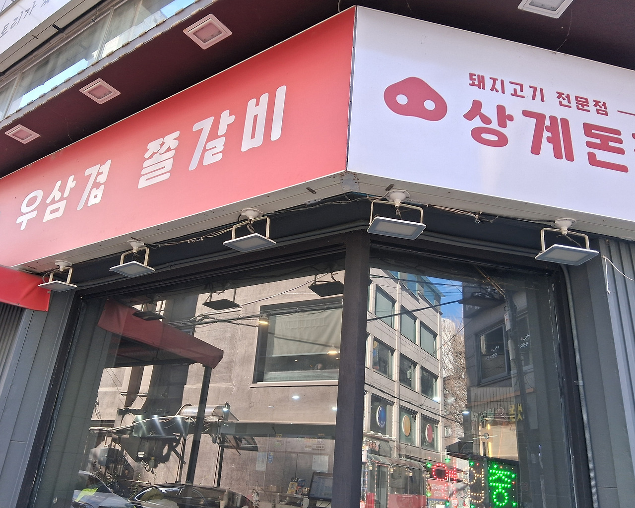 상계역까지 휘리릭 내려온다. 뒤풀이 장소인 <상계돈집>으로 간다. 후미에 속한 나는 가 보니 자리가 없다. 비어 있는 자리도 물어보니 다 사람이 있단다. 보조 의자도 놓여 있지 않다. 그래서 나는 그냥 집에 가려고 나온다. 집이 머니까 빨리 가도 좋다. 그런데 상계역 반대 방향으로 갔다. 상계역으로 가려면 <상계돈집>을 다시 지나가야 한다. 막 지나쳐서 가려는데 몇 사람이 자리가 없다며 또 나와서 휙 하고 상계역 쪽으로 가버린다. 나도 따라가려는데 별대장님이 후미 팀을 데리고 <상계돈집>으로 온다.