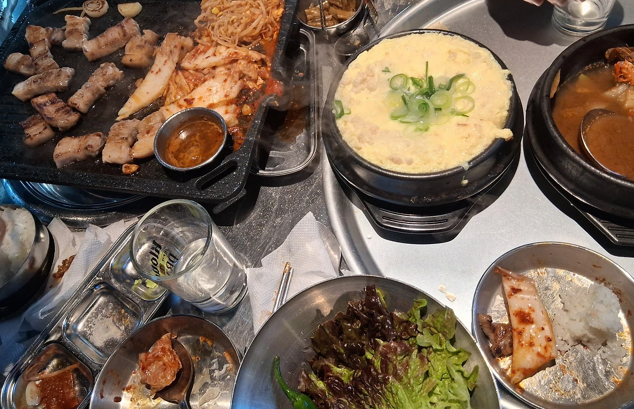 출입문 제일 가까운 테이블에 자리 하나가 있다. 가서 앉는다. 모두 다 모르는 이들이다. 이분들도 나를 처음 본단다. 네 사람은 오래 알아온 사이라 친분이 있단다. 나는 새로운 환경에도 적응을 잘하는 편이라 편안하게 앉아서 노릇노릇 구워진 삼겹살 고기를 먹는다. 바로 앞에 앉은 남산우님이 고기를 구워서 여산우님들과 내 앞접시에 놓아주기도 한다. 왼쪽에 앉은 남산우님은 방송국에서 일을 하신다는데, 항정살 고기를 2인분 더 사고 공깃밥도 주문해서 맛있게 볶아주신다. 계란 2개, 김가루 등을 넣고 볶으니 고소하니 맛이 있다.