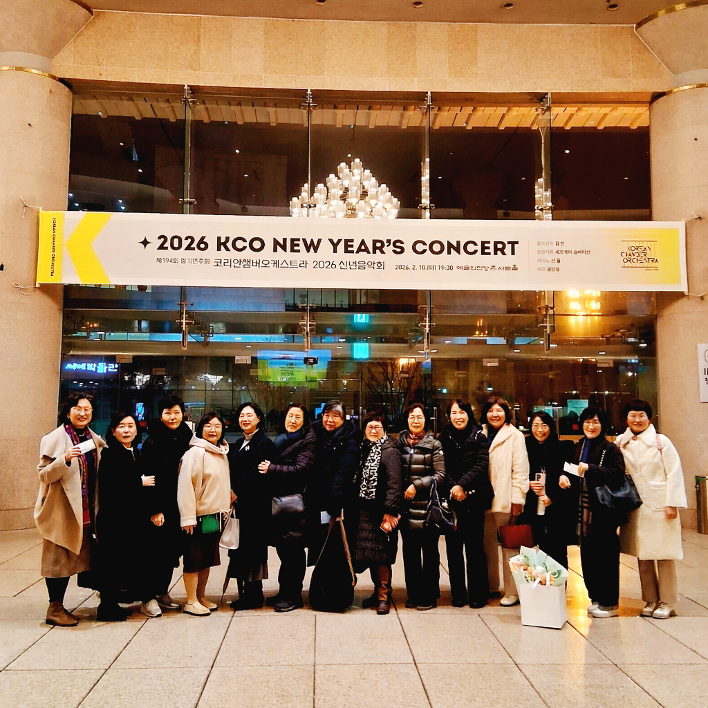 2026년 설을 맞으면서 2026 KCO(코리안챔버오케스트라) 신년음악회를 관람한다. 이화 80 유지혜 친구가 딸 권민영 하피스트의 연주에 초대해 주었다. 덕분에 이화 80 친구들이 21명이나 참석해서 소중한 시간을 가진다. 국내외 정상급 연주자들과 권민영 하피스트의 아름다운 선율로 새해를 시작하게 되어 감사하다. 음악은 사람에게 평화를 가져다주고 지극히 높은 경지로 이끌어준다.