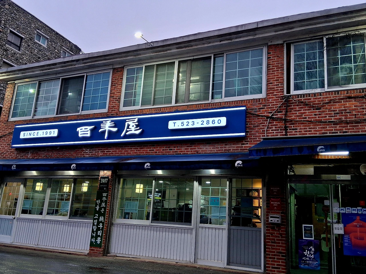 울 친구들 저녁 식사 장소인 <백년옥>은 <예술의 전당> 건너편 대로변에 있다. <백년옥>은 본관과 신관이 있는데 골목길을 사이에 두고 바로 붙어있다. 본관은 가본 적이 없고 신관도 이번이 처음이다. 본관은 앞마당에 주차장을 두고 2층 짜리 단독건물이고, 신관은 지하 1층에 있다.