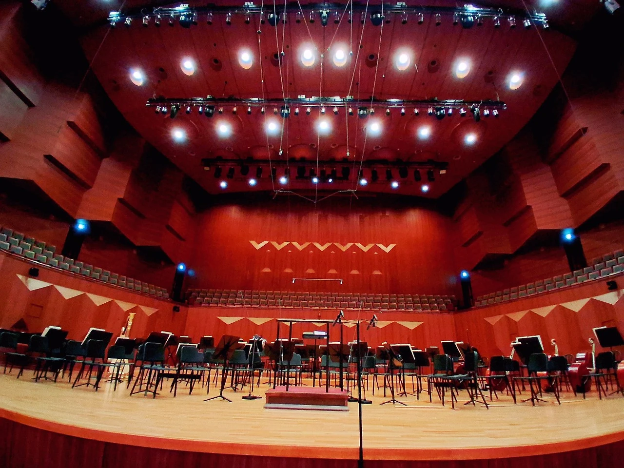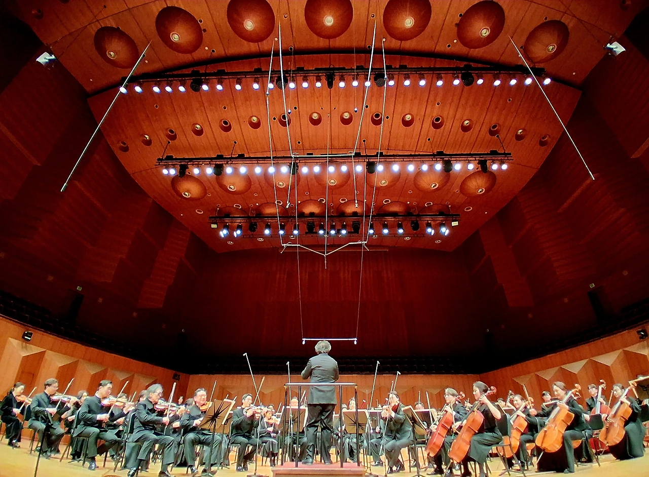 연주회 도중에는 사진이나 동영상 촬영이 금지되어 있어서 먼저 의자만 놓인 무대를 찍어본다. 연주자들이 악기를 들고 들어와서 의자에 앉아서 음을 고르고 머리가 희끗희끗하신 분이 마지막으로 들어오셔서 인사하고 앉으시는데 음악감독을 맡으신 김민 님이시다. 지휘자인 세르게이 슴바티안 님은 아주 유명한 실력 있는 분이란다.