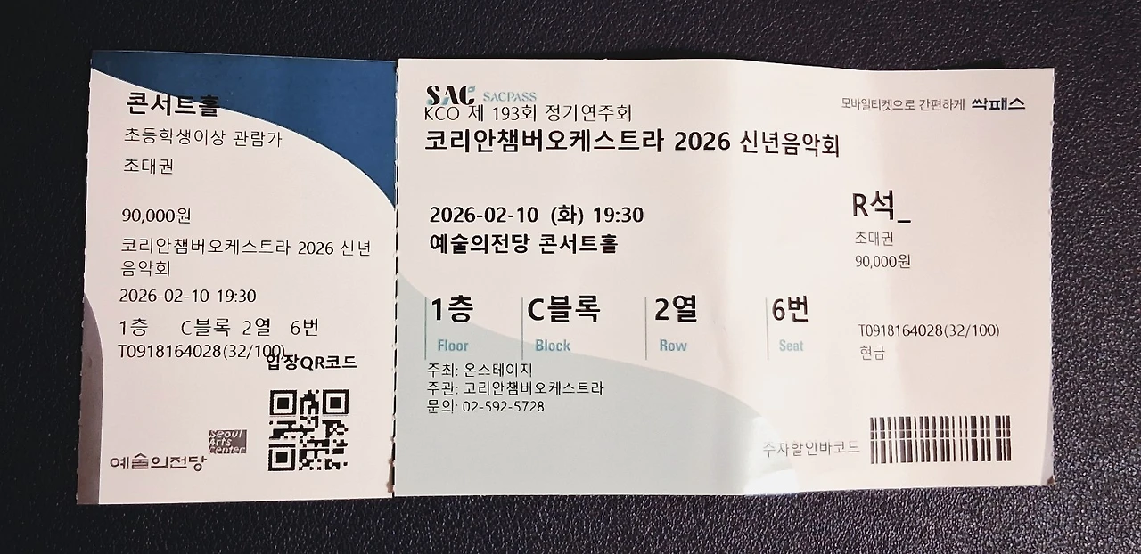 <예술의 전당> 2층 매표소에서 초대권을 티켓으로 발권하고 직접 음악회만 오는 친구들을 기다린다. 내 자리는 맨 앞자리 가운데 R석 C블록 2열이다. 우리 친구들도 대체로 내 옆자리이거나 D열 앞자리이다. 티켓을 사려면 꽤 비싼 좌석들이다. 친구 덕분에 좋은 자리에서 연주 장면을 가까이 보면서 들을 수 있게 되었다.