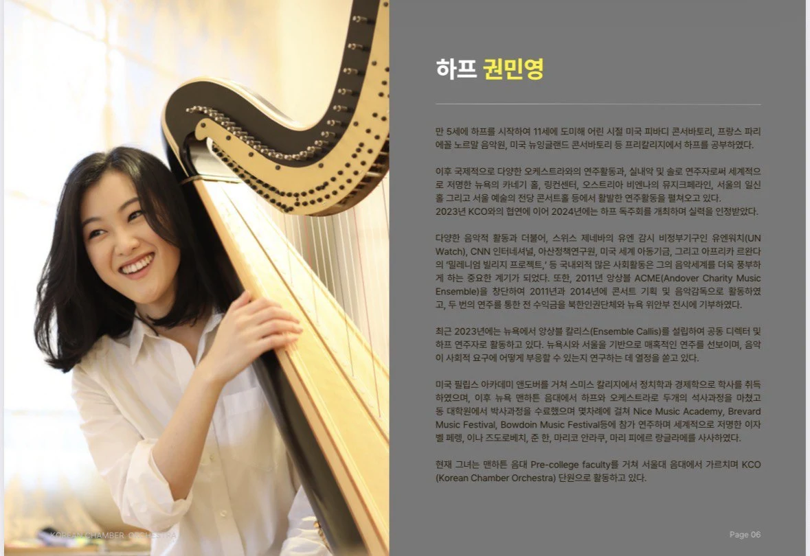 특별히 하프라는 악기는 무지 비싸기도 하다는데(물론 오케스트라의 다른 악기들도 그럴 것이다), 이런 귀한 악기 연주를 친구 덕분에 들을 수 있어서 문화생활을 제대로 누린다.