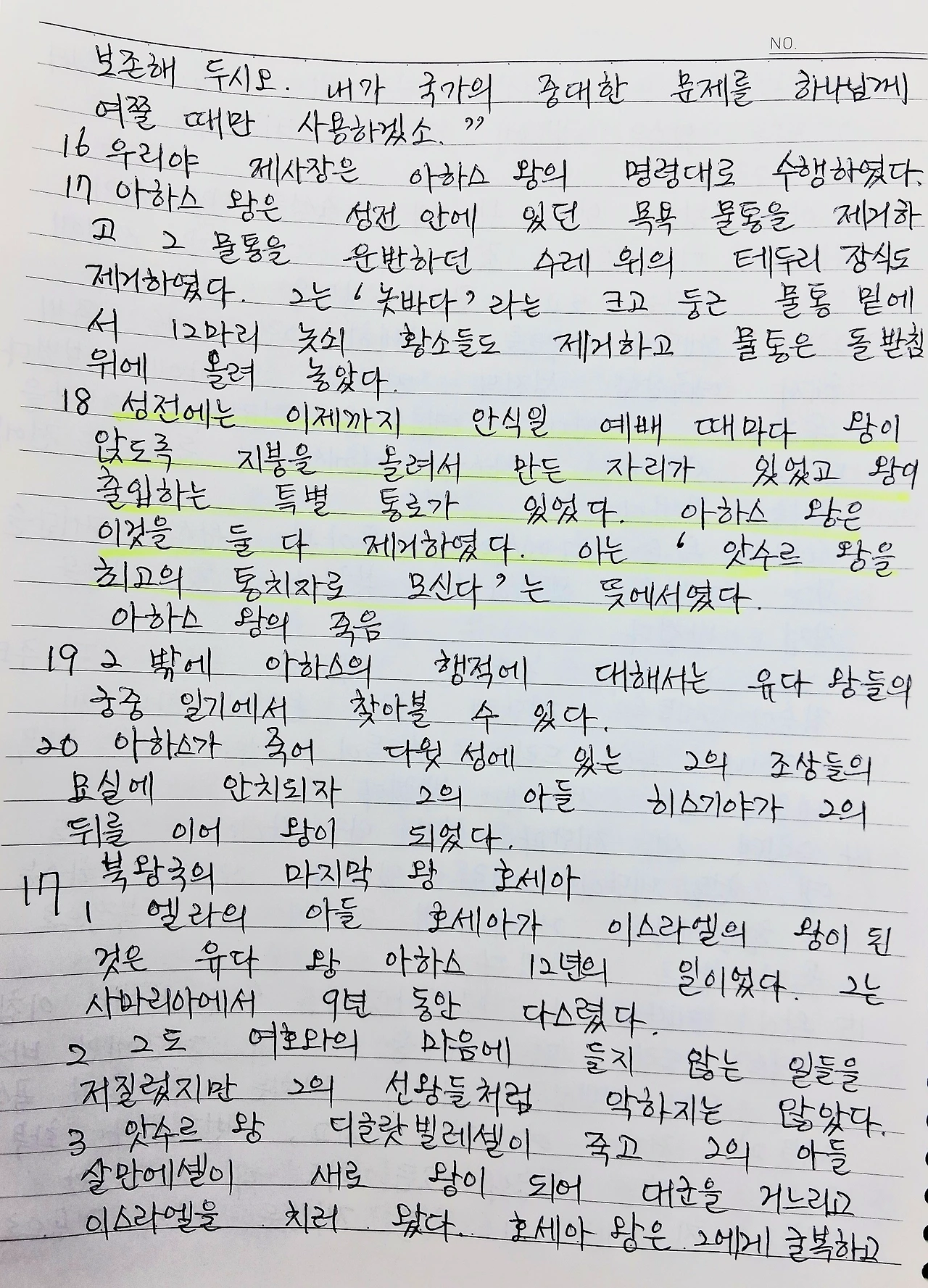 아하스 왕은 이제 하나님을 모시는 것이 아니다. 자기 왕의 자리까지 없애고 앗수르 왕의 온전한 종이 되고 만 것이다. 그러니 하나님께서 세워주신 나라와 왕의 자리가 어찌 굳건해질 수 있겠는가? 그 앞날은 불을 보듯 뻔한 결과가 남아있을 뿐이다.