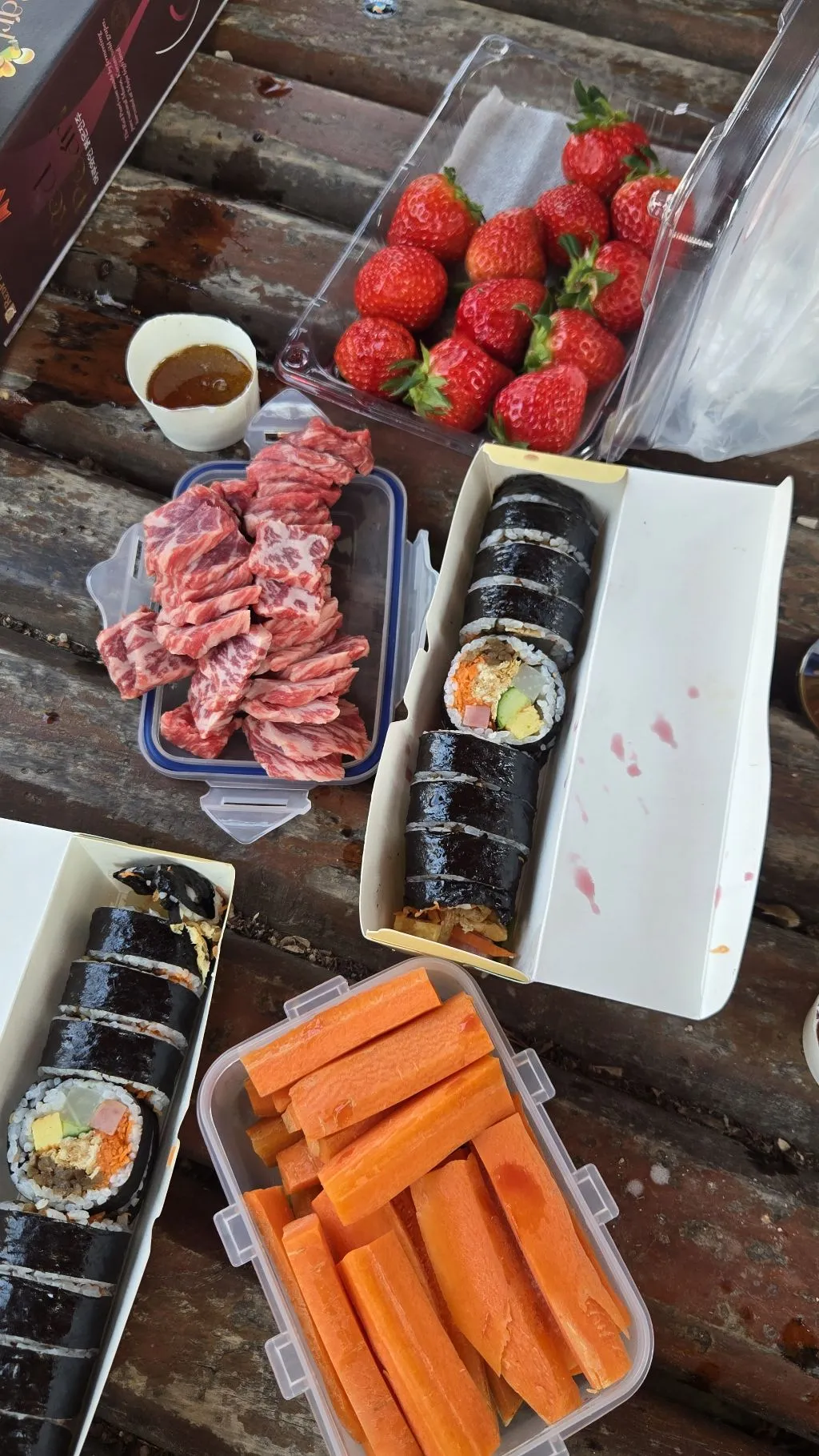 동남아 어느 여행지 같은 멋스러운 정자가 있는 곳에서의 점심시간은 특별히 더 즐거운 시간이었다. (아, 그런데 먹느라 정신이 팔려 사진을 못 찍었다. 이를 어째? 그런데 다른 산우님이 찍은 사진이 있어서 퍼왔다.) 육사시미와 참기름깨소금장, 초장을 비롯해서 꽃봉오리 모양 썰어온 사과, 꼬마김밥 비슷한 토막 김밥, 가득 찬 팥소가 고소한 경주 황남빵, 살짝 건네주신 치즈 한 개, 다도 대가님의 깔끔한 입가심 보이차 등 여러 가지 맛난 음식 가져오셔서 입을 호강하게 해 주신 산우님들에게 감사하다.