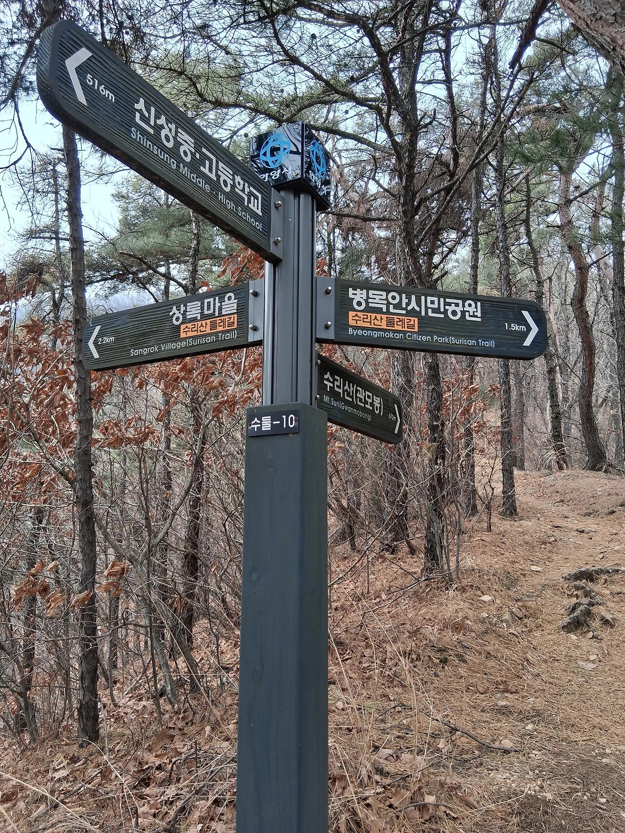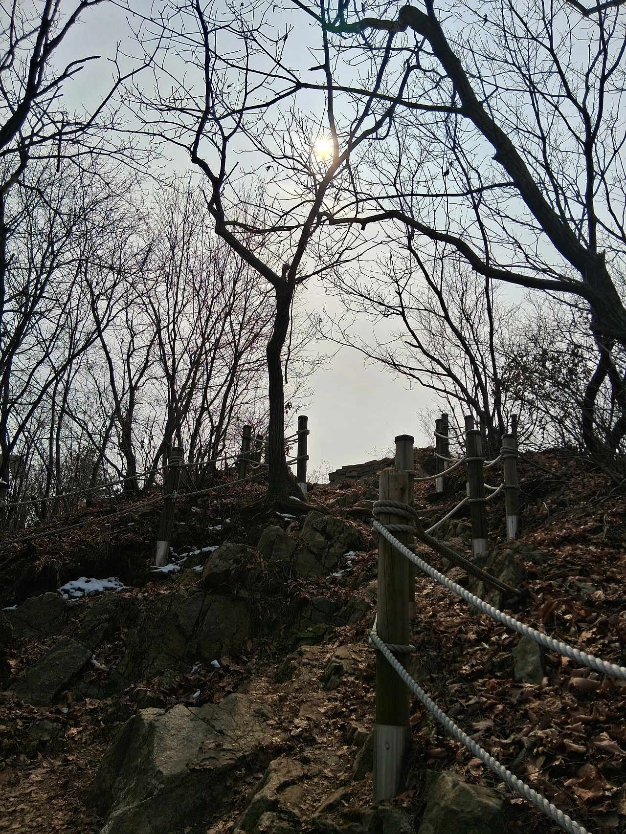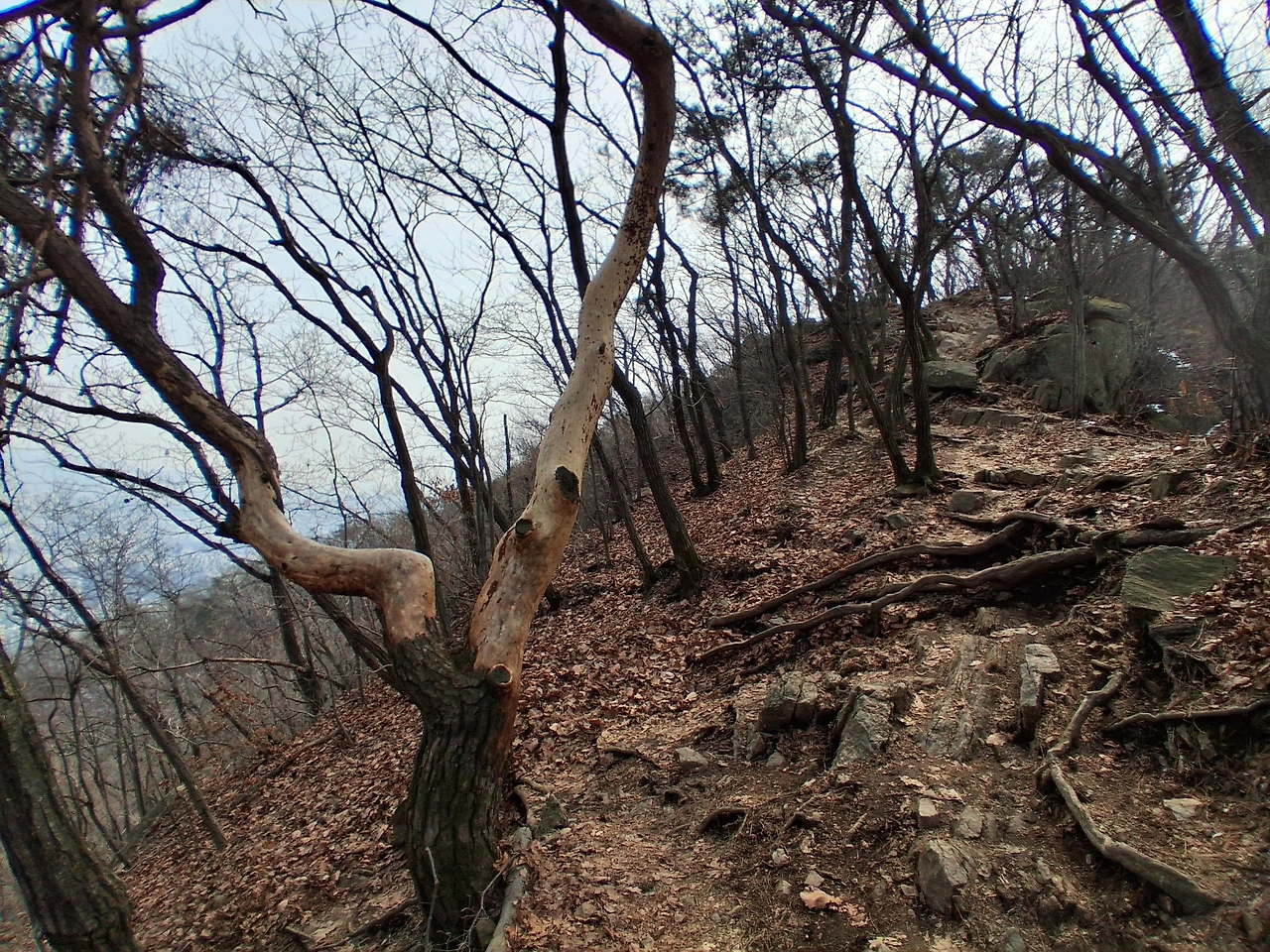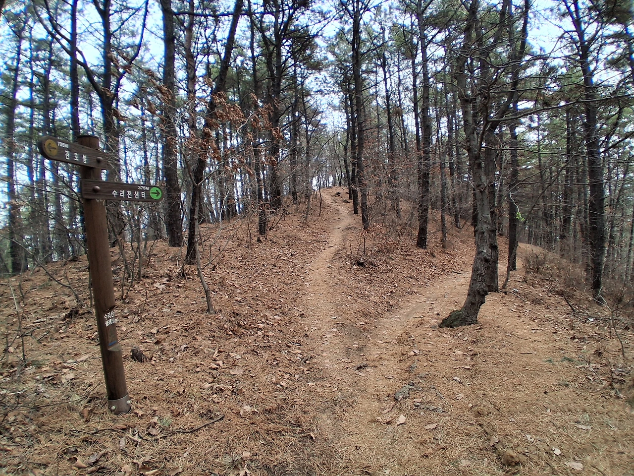 미안한 기색도 없이 짜증 섞인 투다. 아마도 주술적인 무슨 행동인 듯하다. 어느 점쟁이가 복채를 두둑이 받고 내린다는 처방이 "수리산에 올라 관모봉 쪽을 보고 원을 100번 그으라"라고 했던지 뭐, 그런 걸 거다! 예전에 우리 친정 엄마가 그런 걸 좋아해서 내가 잘 안다. 암튼 나는 그 여자가 안 비켜주어 말다툼이 날 수도 있기에 낙엽이 쌓인 옆길로 올라간다. 이리하여 수리산에서 마음에 안 드는 사람 세 사람 만났다.