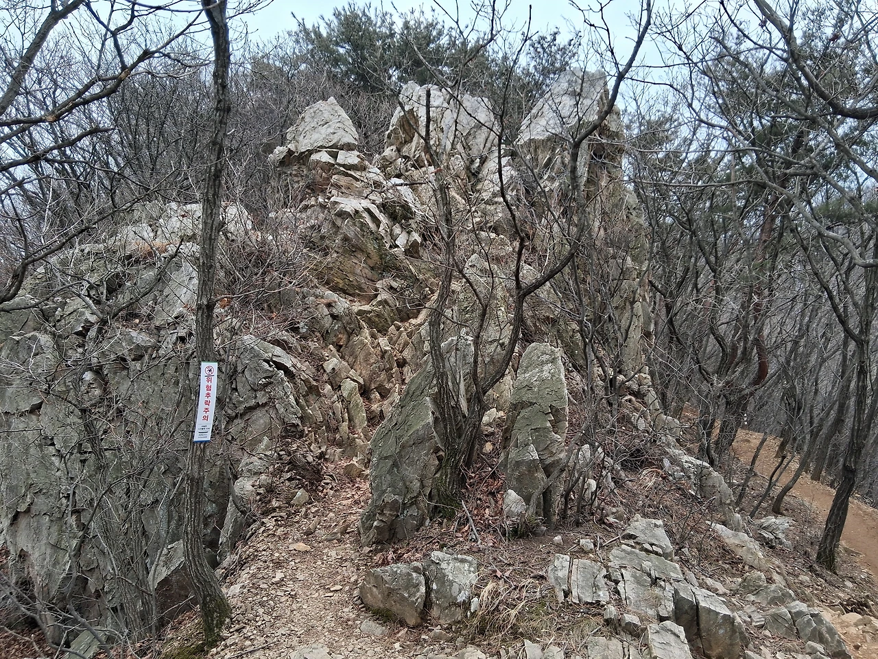 나는 얼른 그들을 지나쳐서 관모봉 쪽으로 오른다. 처음 가보는 길이다. 암릉이 꽤 있다.