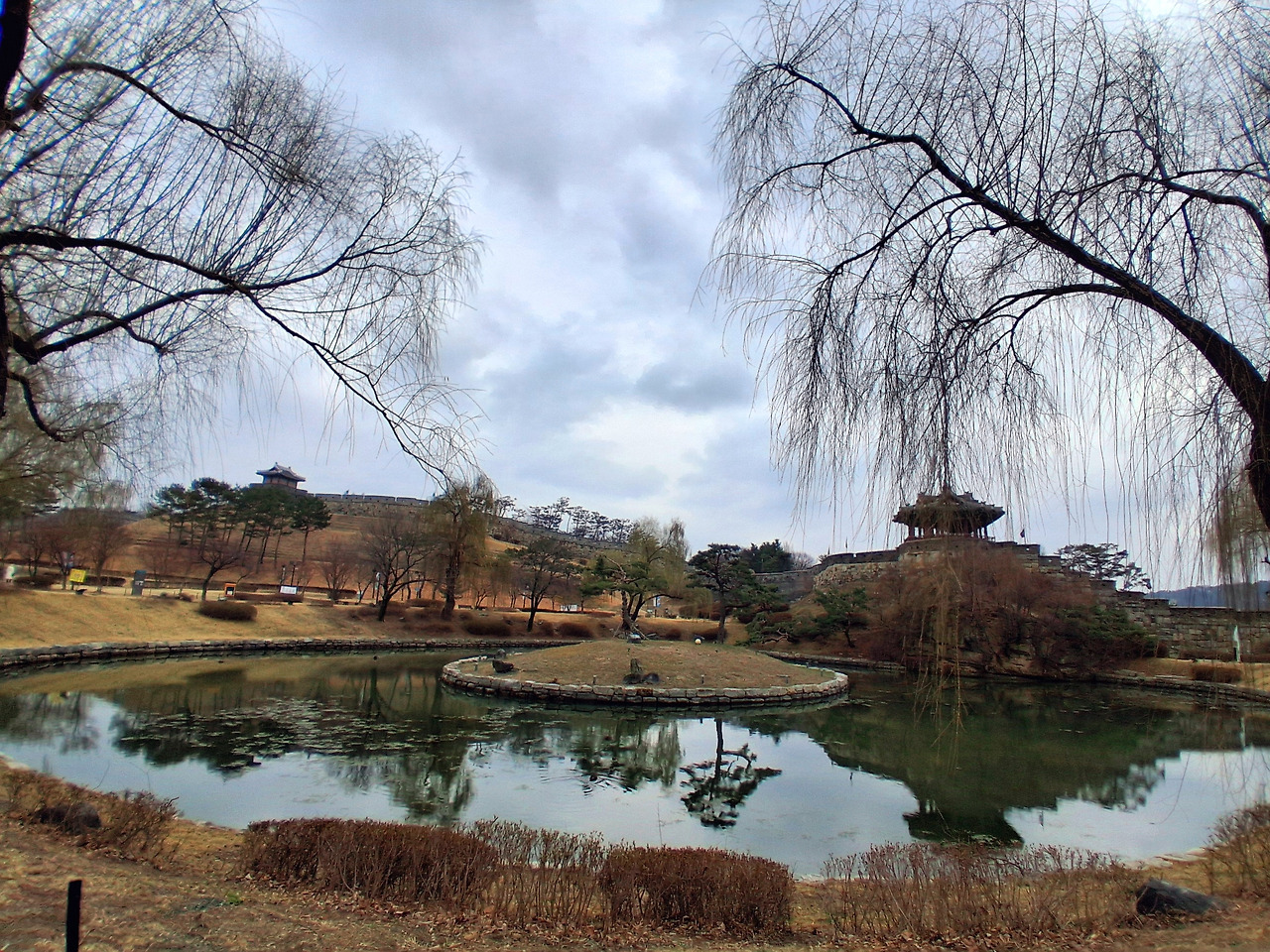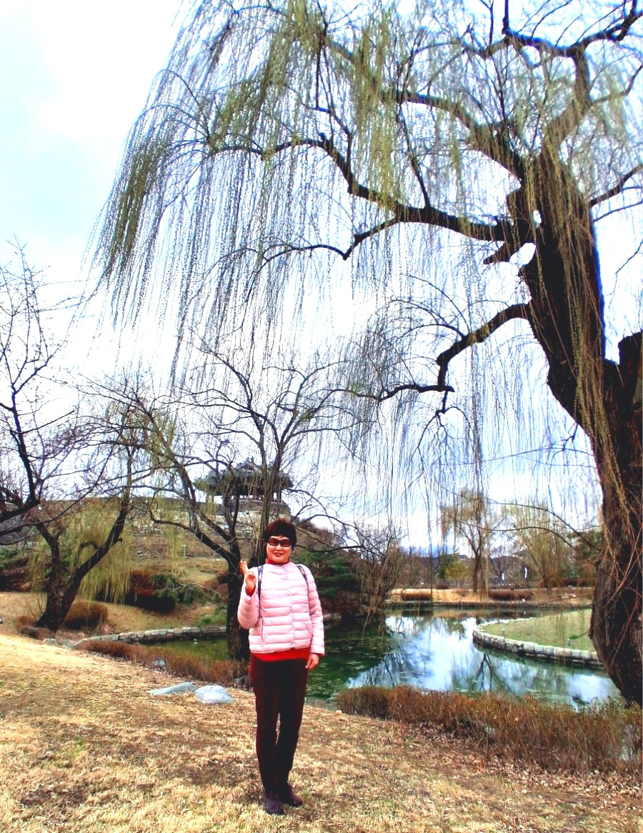 그렇지만 방화수류정과 용연과 그 옆에 키 큰 나무로 서서 축축 늘어진 능수버들을 함께 담는 건 아무렇게나 찍어도 얼마나 멋스러운지 감탄을 한다. 초록초록 능수버들 가지에는 이제 막 물이 오르고 있다. 그 앞에 서보니 나도 유명 배우 같이 꽤 괜찮아 보인다. 배경이 사람을 돋보이게 한다.