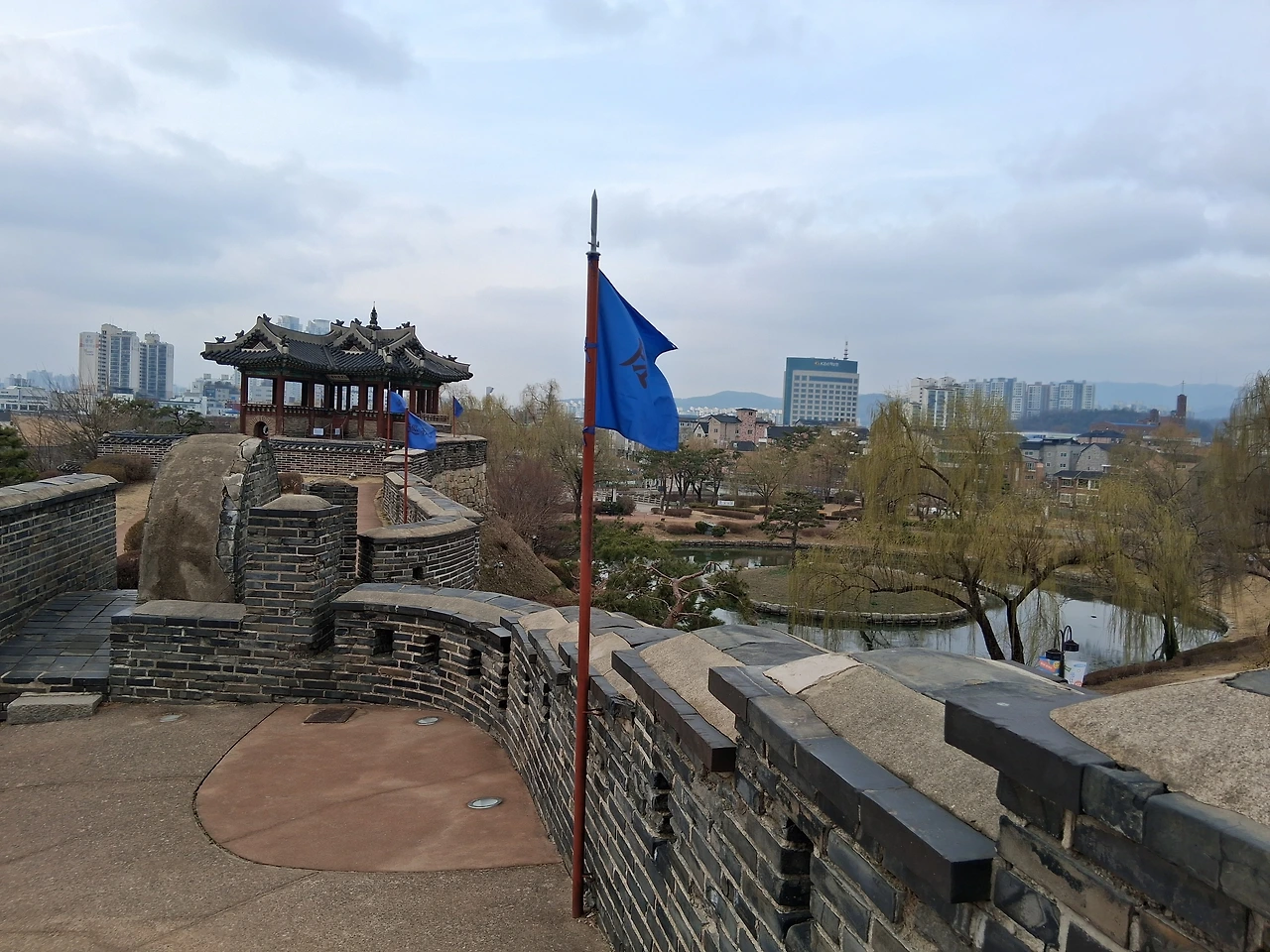 수원미디어센터에서 영화 <중경삼림>(※1)을 보고 나오니 날씨가 활짝 개었다. 그냥 집으로 갈까 하다가 수원화성 성곽길을 조금 더 걸어보기로 한다.